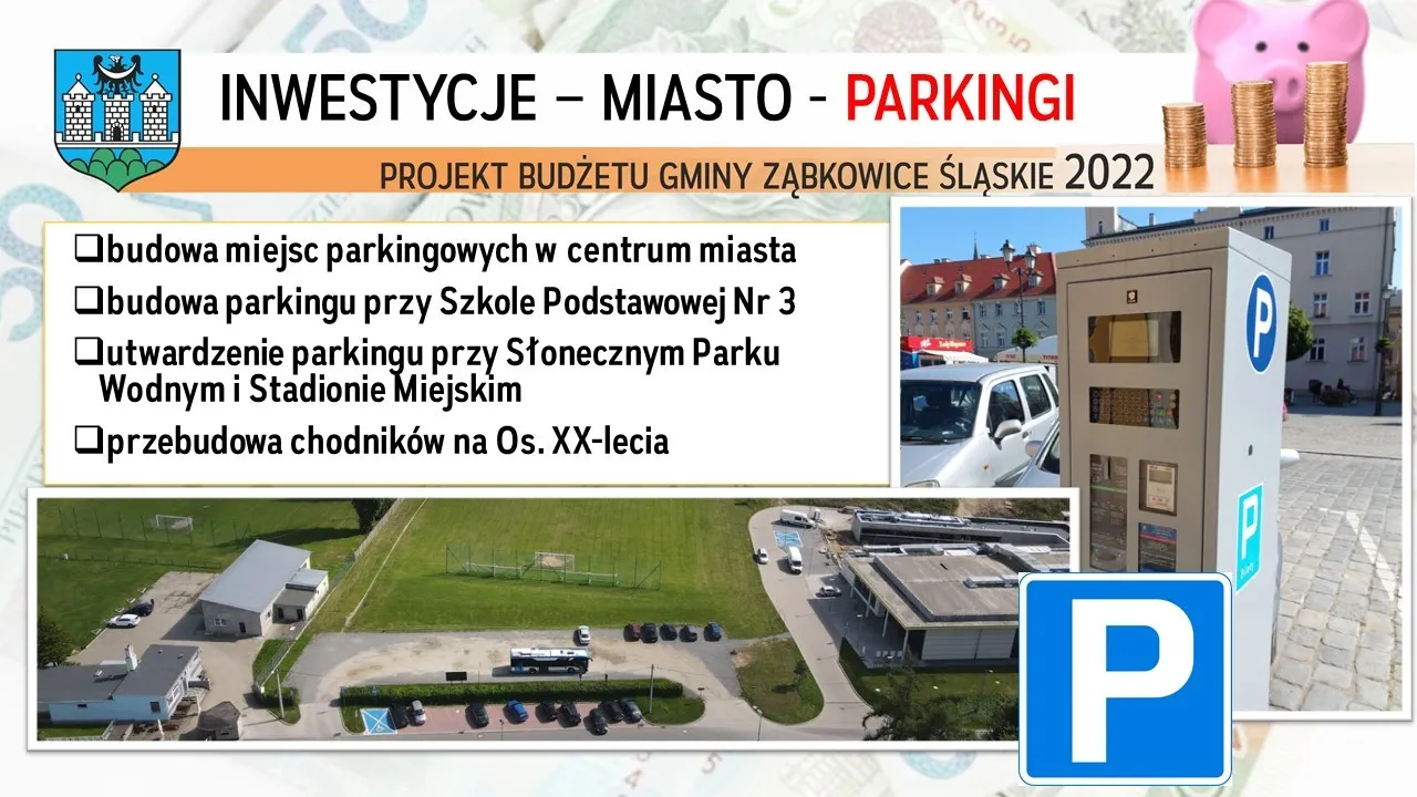 - budowa miejsc parkingowych w centrum miasta;