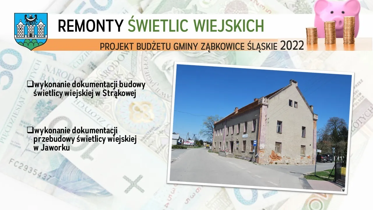 - wykonanie dokumentacji przebudowy świetlicy wiejskiej w Jaworku.