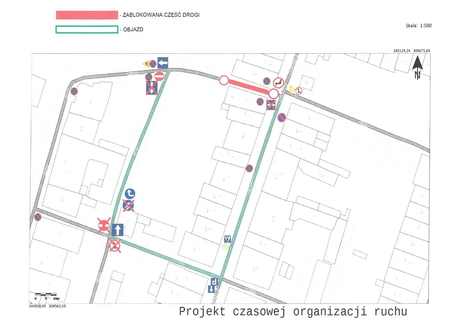 W związku z tym od 18.10.2021 roku do 23.10.2021 roku odcinek ul. Ciasnej przy budynku nr 4 (od ul. Armii Krajowej do końca budynku nr 4 przy ul. Ciasnej) będzie wyłączony z ruchu zarówna dla pojazdów samochodowych jak i dla pieszych. Objazd do ul. Krzywej będzie się odbywał poprzez ul. Szkolną i odcinkiem ul. Ciasnej, na którym zostanie zmieniony kierunek ruchu.