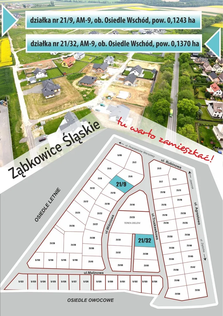 działka 21/9, AM-9, obręb Osiedle Wschód o pow. 0,1243 ha;