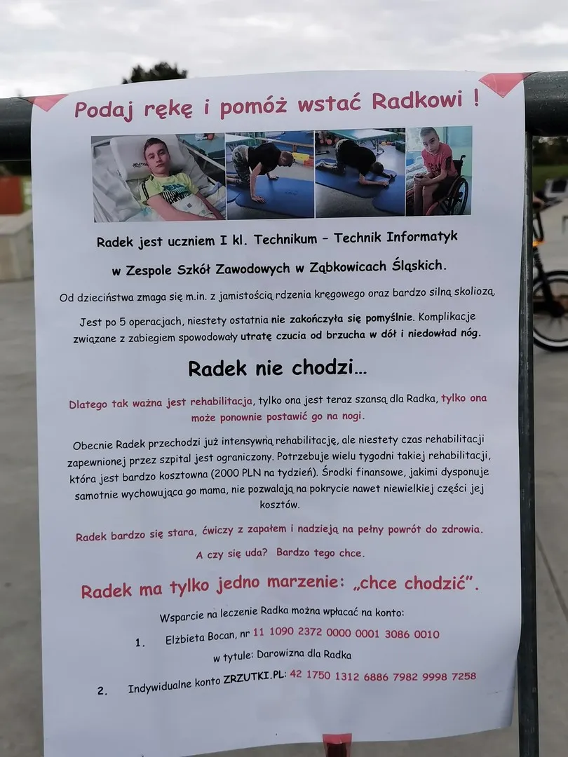 Ząbkowicki skatepark zapełnił się w ostatnią sobotę września miłośnikami rowerowych akrobacji. Młodzi zawodnicy wykonywali niesamowite tricki, a emocjonującym przejazdom towarzyszyła fantastyczna zabawa. Impreza, którą przygotowała nasza wspaniała młodzież miała przede wszystkim cel charytatywny – zebranie funduszy na leczenie 16-letniego Radka. Od dzieciństwa zmaga się on m.in. z jamistością rdzenia kręgowego i bardzo silną skoliozą. Po wielu zabiegach i operacjach konieczna jest intensywna i kosztowna rehabilitacja. Gratulujemy i dziękujemy organizatorom oraz wolontariuszom za wielkie zaangażowanie i przeprowadzenie akcji.