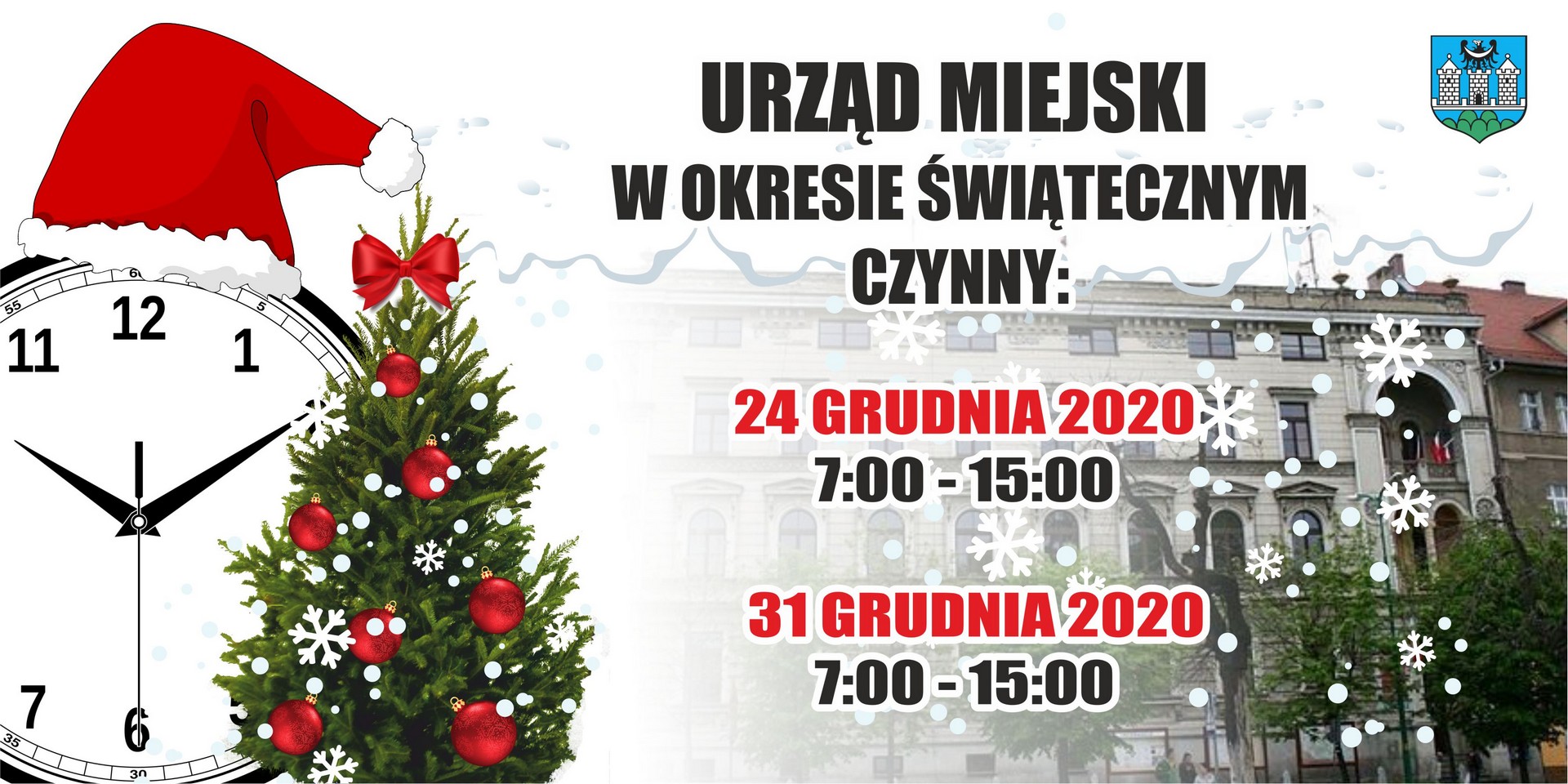 Godziny otwarcia Urzędu Miejskiego w okresie świątecznym bez zmian