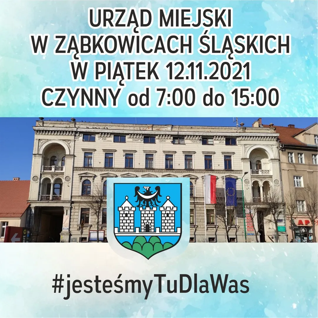 Godziny pracy Urzędu Miejskiego w Ząbkowicach Śląskich w piątek 12 listopada bez zmian
