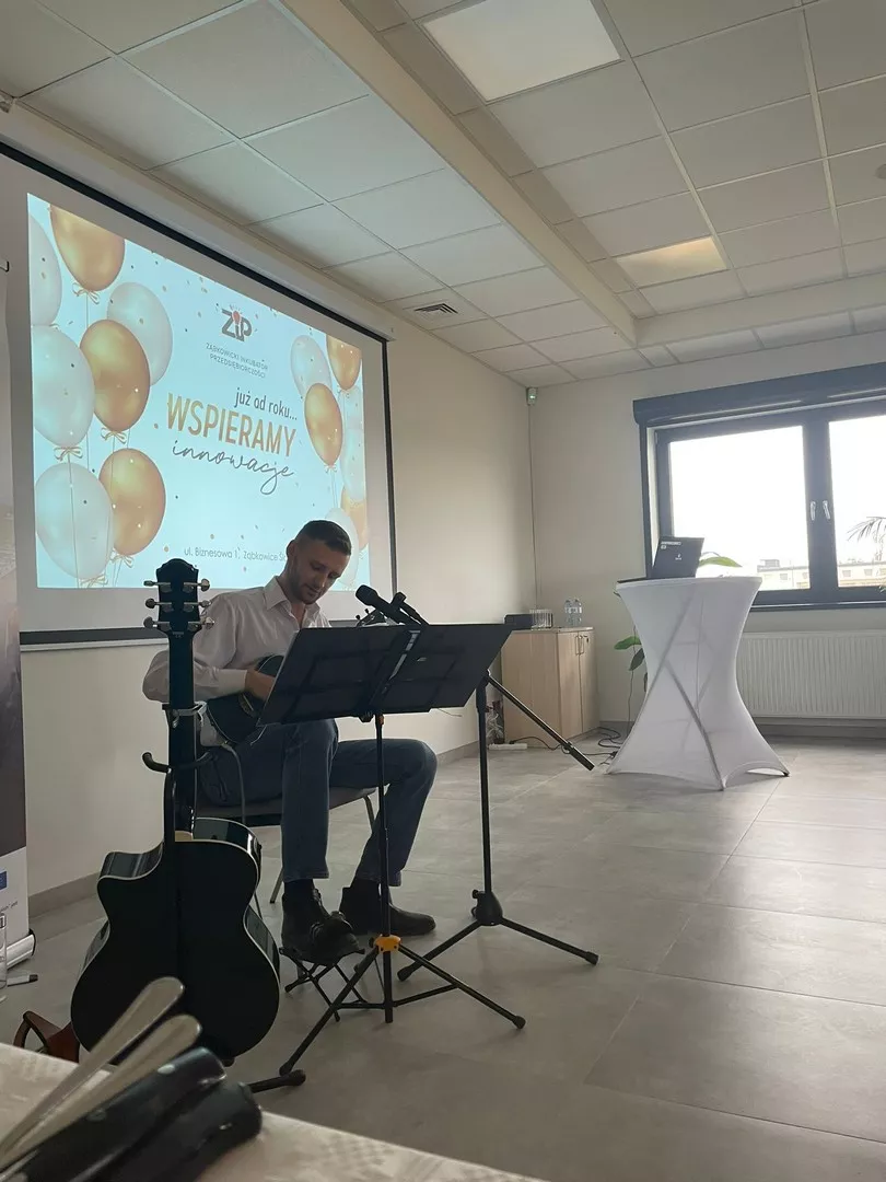 Całe spotkanie otworzył Burmistrz Ząbkowic Śląskich - Marcin Orzeszek, dziękując przedsiębiorcom oraz gościom za ich obecność i zaangażowanie w mijającym roku. Wyróżnienia otrzymali przedsiębiorcy, którzy prowadzą swoją działalność w inkubatorze: Mateusz Miazga z firmy Smart Home, Łukasz Majerczyk z Kancelarii Finansowo Rachunkowej, Daniel Ruciński - Doradca Ubezpieczeniowy, Piotr Wiaderny z 2Mint oraz Kamil Wojakowski z Firma Technology. Każdy miał okazję przedstawić krótką prezentację na temat swojej działalności, dzieląc się osiągnięciami i planami na przyszłość. Powiatowy Urząd Pracy zaprezentował film z informacjami na temat oferowanego wsparcia dla przedsiębiorców. Wiceprezes Banku Spółdzielczego, Anna Gałek, również zabrała głos, podkreślając znaczenie współpracy z lokalnymi przedsiębiorcami. Po części oficjalnej nastąpił występ lokalnego artysty, Jerzego Poleszczuka, który zachwycił zgromadzonych swoim talentem muzycznym. Następnie, wszyscy uczestnicy mogli skosztować pysznego torta przygotowanego specjalnie na tę okazję oraz wznieść toast lampką szampana. Wydarzenie stanowiło doskonałą okazję do integracji lokalnej społeczności przedsiębiorców. Burmistrz Marcin Orzeszek podkreślił, jak ważne są takie inicjatywy dla rozwoju gospodarki lokalnej i zachęcił do dalszego aktywnego udziału w życiu Inkubatora. Spotkanie było również świetną okazją do nawiązania nowych kontaktów biznesowych oraz wymiany doświadczeń między przedsiębiorcami. Organizatorzy zadbali o każdy detal, aby uczestnicy czuli się komfortowo i mogli w pełni cieszyć się wydarzeniem. Podczas uroczystości nie zabrakło również czasu na nieformalne rozmowy i wspólne zdjęcia.