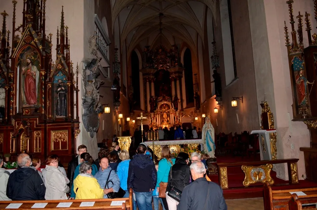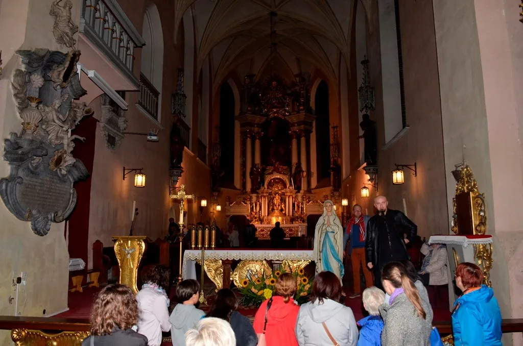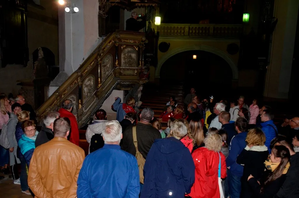 Zainteresowani mogli poznać historię ołtarza głównego, ambony, organów, lóż kolatorskich, ale przede wszystkim tumby pary książęcej. Podczas tegorocznej nocy kościołów otwarto, znajdujący się w kruchcie południowej, późnogotycki nagrobek pary książęcej - Karola I Podiebrada i jego małżonki Anny Żagańskiej.