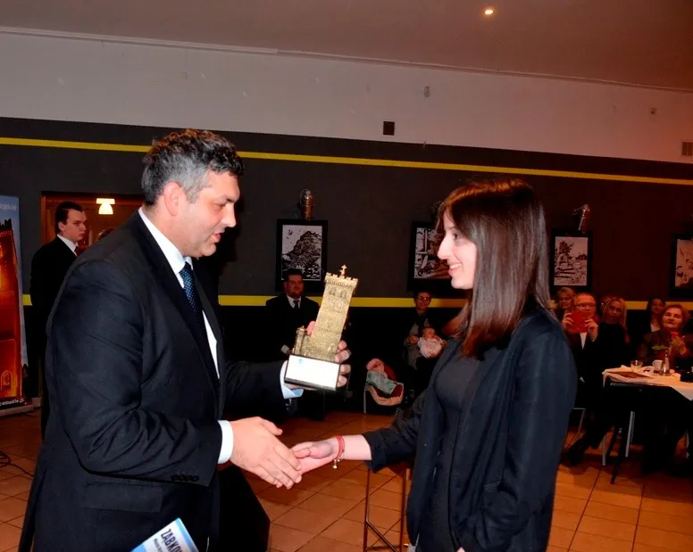 Laureat: Olga Zaborska - uczennica klasy III Gimnazjum Publicznego nr 1 w Ząbkowicach Śląskich. Aktywnie bierze udział w pracy Samorządu Uczniowskiego, w którym zajmuje stanowisko wiceprzewodniczącej. Wspiera i organizuje wiele akcji charytatywnych na terenie placówki i gminy Ząbkowice Śląskie. Corocznie bierze czynny udział w Wielkiej Orkiestrze Świątecznej Pomocy, współpracuje ze schroniskami dla zwierząt, i uczestniczy w organizowaniu lekcji otwartych dla uczniów szkół podstawowych i ząbkowickich przedszkoli. Dodatkowo pomaga przy prowadzeniu zajęć na Ząbkowickim Uniwersytecie Dziecięcym, bierze czynny udział w uroczystościach, akademiach nie tylko szkolnych, ale i gminnych, a także jest przedstawicielem w Poczcie Sztandarowym Publicznego Gimnazjum nr 1 w Ząbkowicach Śląskich. Poza tym jest Kapitanem drużyny matematycznej w konkursie organizowanym przez Uniwersytet Wrocławski. Jest Laureatką i finalistką wielu konkursów przedmiotowych i olimpiad w tym „zDolny Ślązak”, „Olimpiada Matematyczna Juniorów”, „Konkurs Wiedzy Obywatelskiej i Ekonomicznej”, „Akademia Wiedzy o Prawie”. Olga jest uczennicą miłą, grzeczną, lubianą przez uczniów i pracowników Publicznego Gimnazjum nr 1 w Ząbkowicach Śląskich.