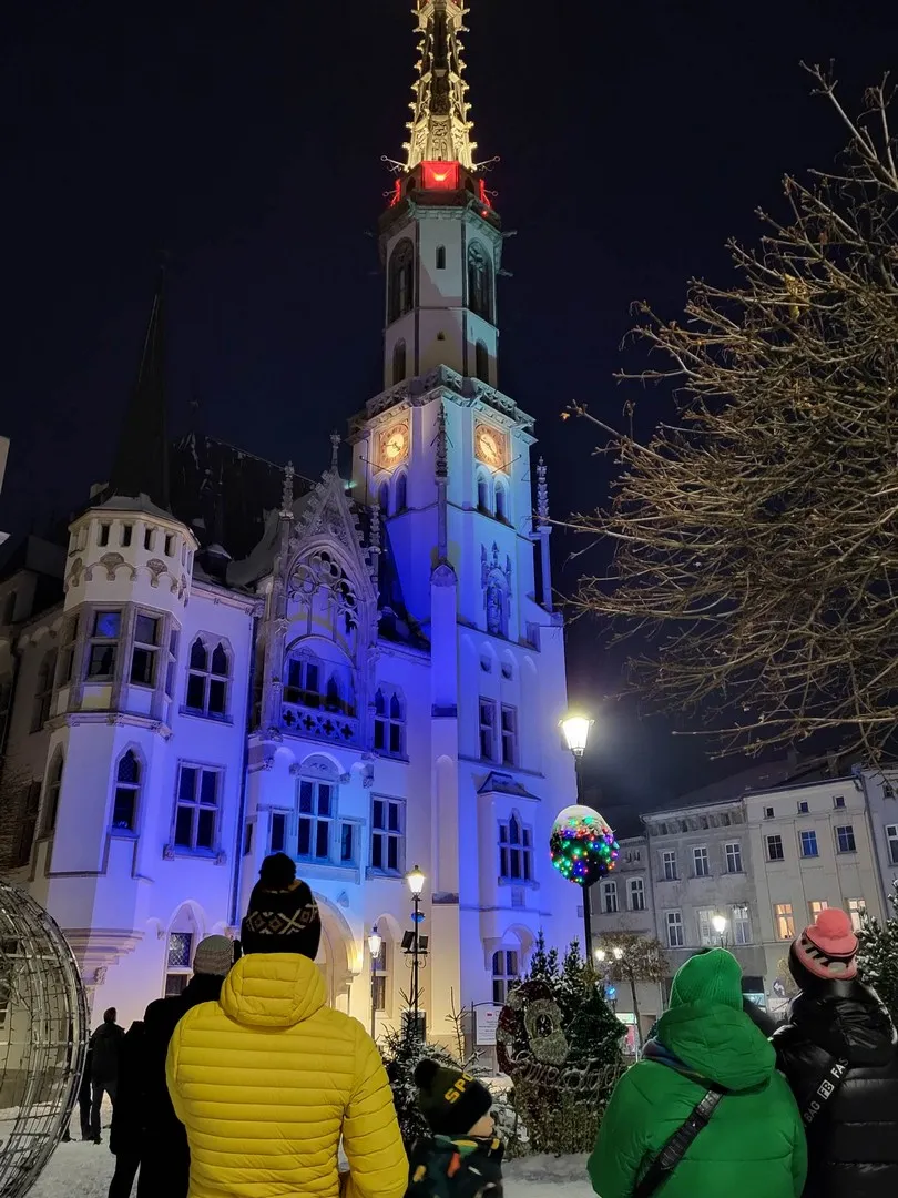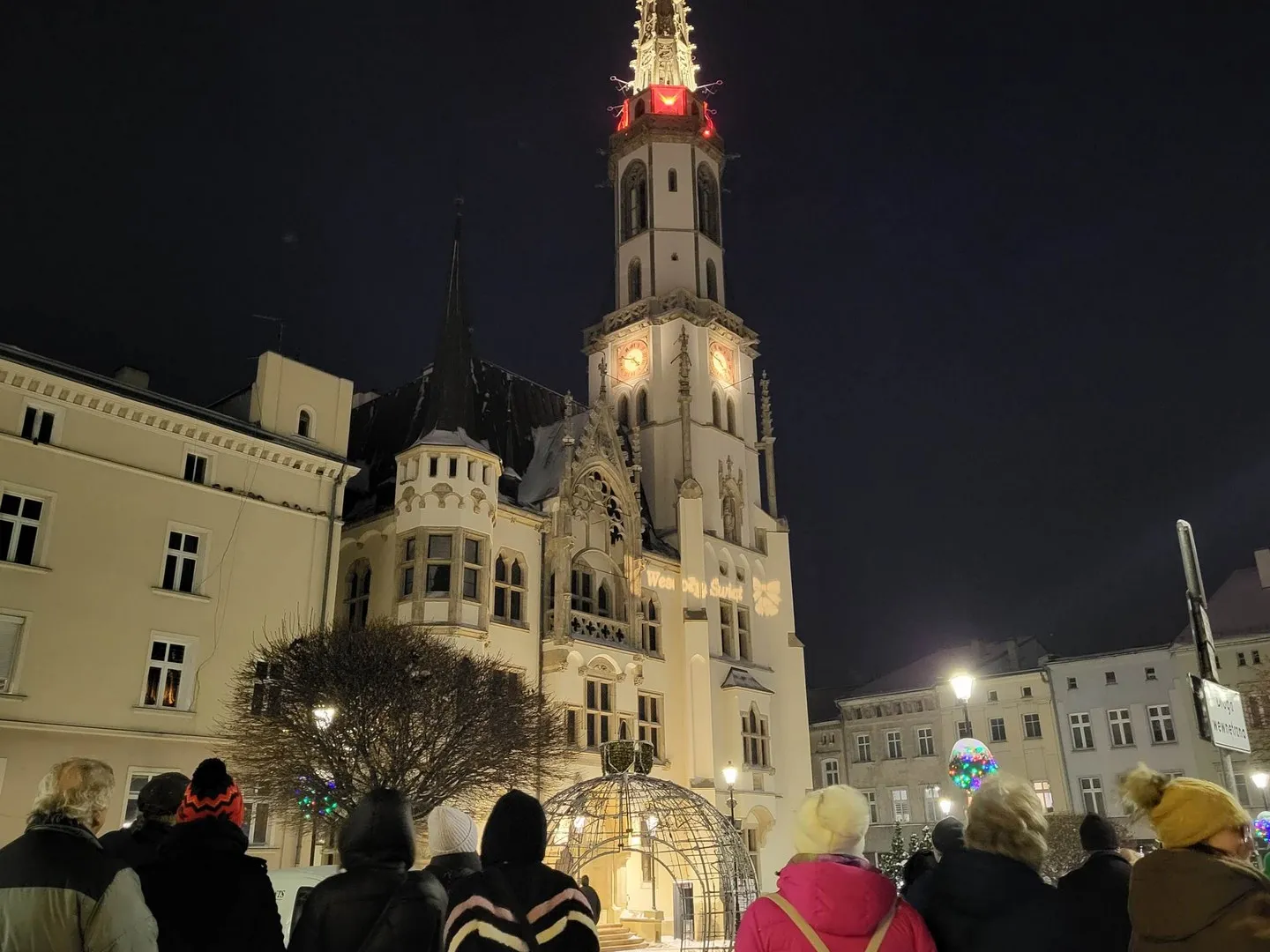 Wiele osób czekało na końcówkę Jarmarku Bożonarodzeniowego, aby zobaczyć nową iluminację ratusza. O godzinie 16:30 wszyscy zebrani mogli podziwiać ratusz w kolorowym oświetleniu, które podkreślało nowy wygląd budynku po remoncie.