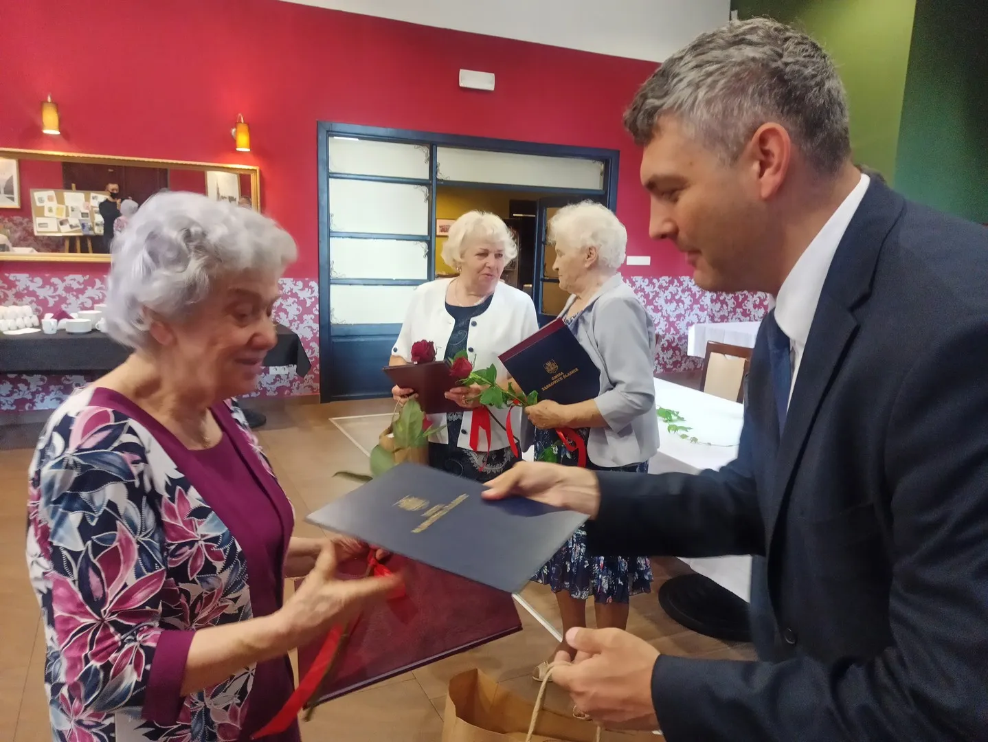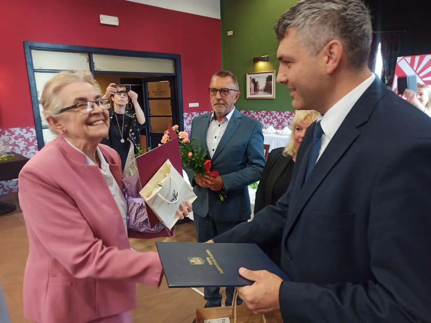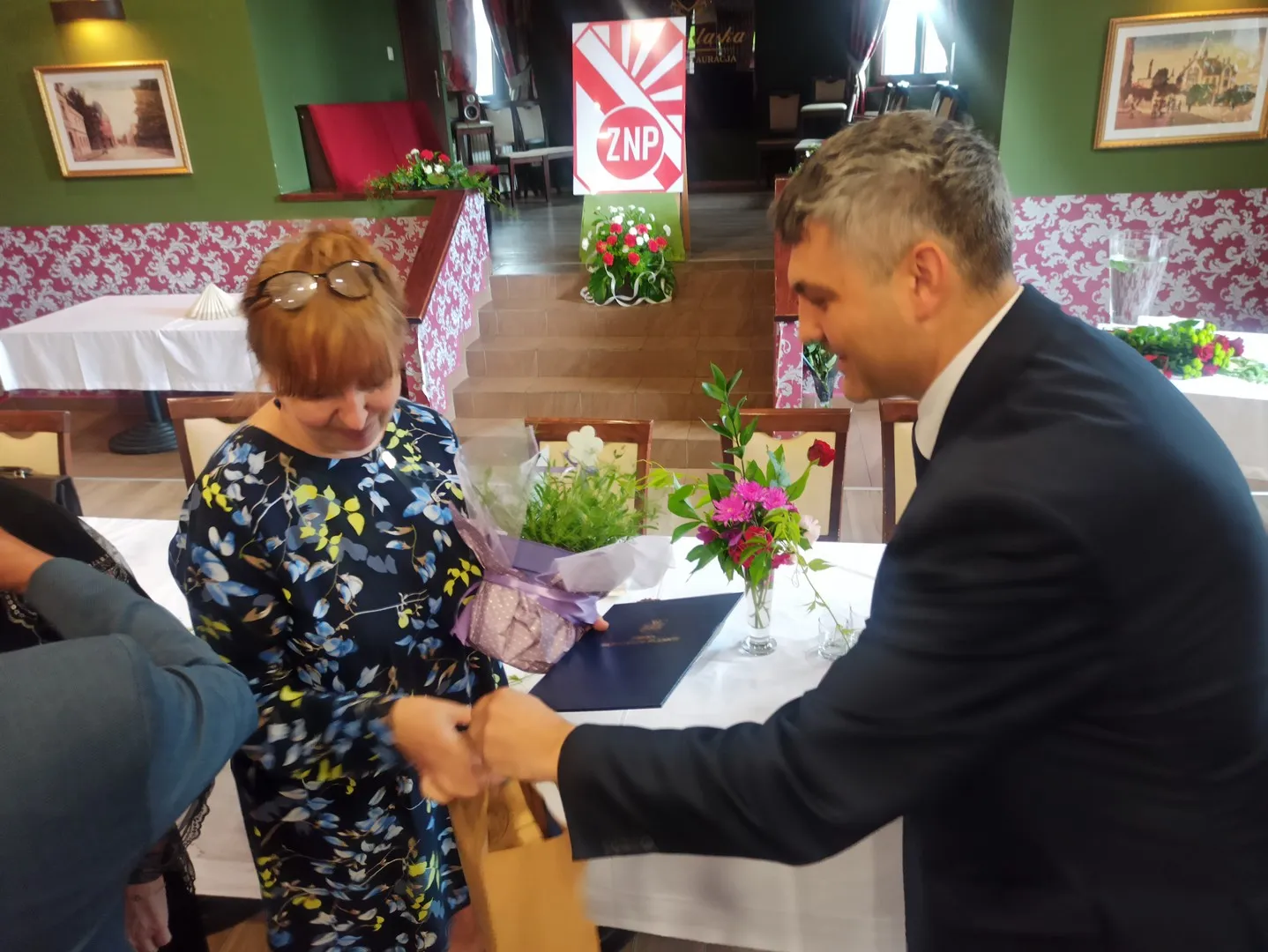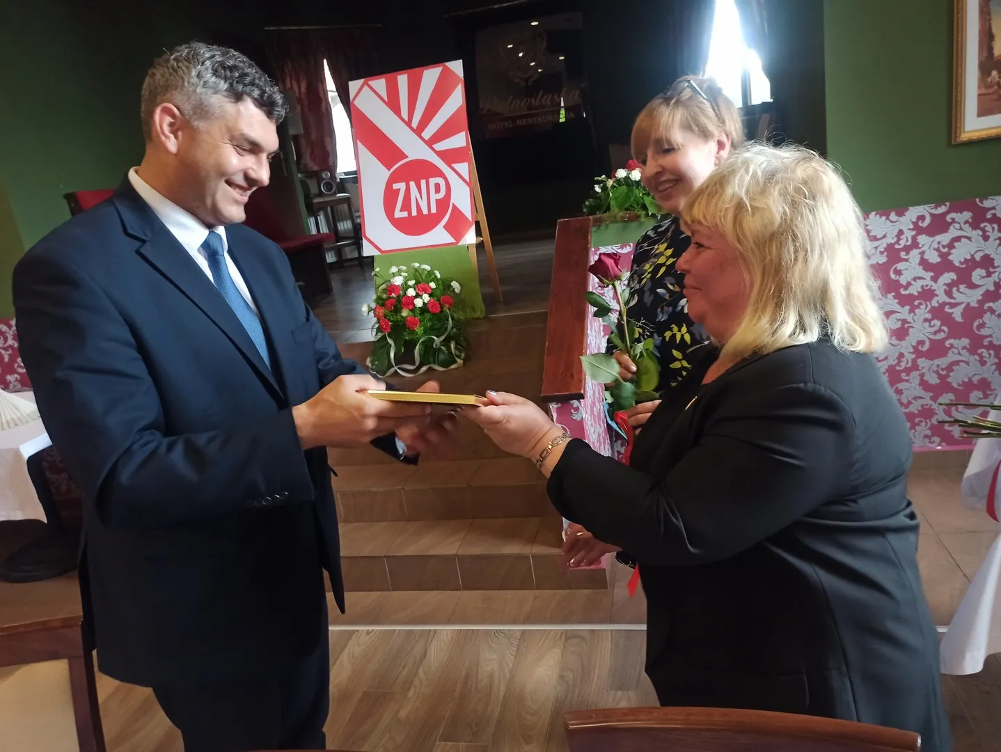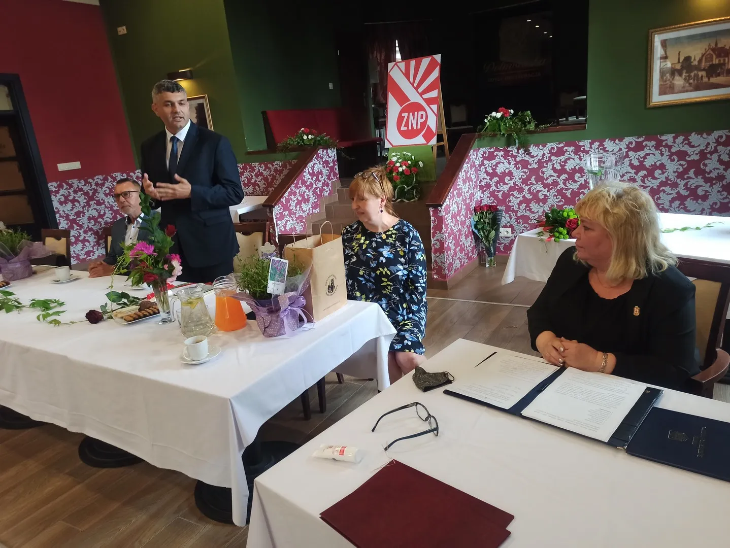 W uroczystości wziął udział również Marcin Orzeszek, Burmistrz Ząbkowic Śląskich, który złożył na ręce Prezes Oddziału ZNP gratulacje za dotychczasową działalność, współpracę z Urzędem Miejskim i przygotowanie uroczystości. Podziękowania i gratulacje zostały przekazane także wyróżnionym członkom ZNP.
