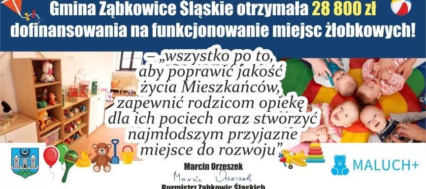 „To już kolejne dofinansowanie dla ząbkowickiego Żłobka. W poprzednich latach otrzymaliśmy 660 tys. złotych z programu Maluch + na remont budynku, na funkcjonowanie 36 450 zł z programu Maluch + oraz 1 mln 108 tys. zł z Europejskiego Fundusz Społecznego” – mówi Burmistrz Ząbkowic Śląskich Marcin Orzeszek – „wszystko po to, aby poprawić jakość życia Mieszkańców, zapewnić rodzicom opiekę dla ich pociech oraz stworzyć najmłodszym przyjazne miejsce do rozwoju”.