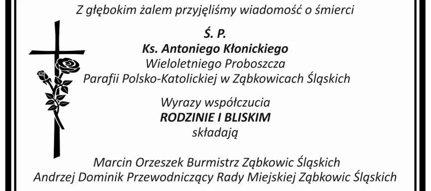 Kondolencje dla Rodziny i Bliskich ks. Antoniego Kłonickiego