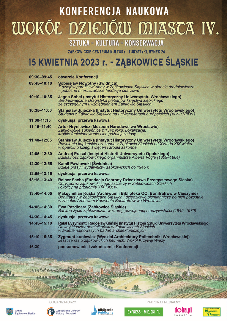 Konferencja Naukowa WOKÓŁ DZIEJÓW MIASTA już w sobotę 15 kwietnia! Wstęp wolny - zapraszamy