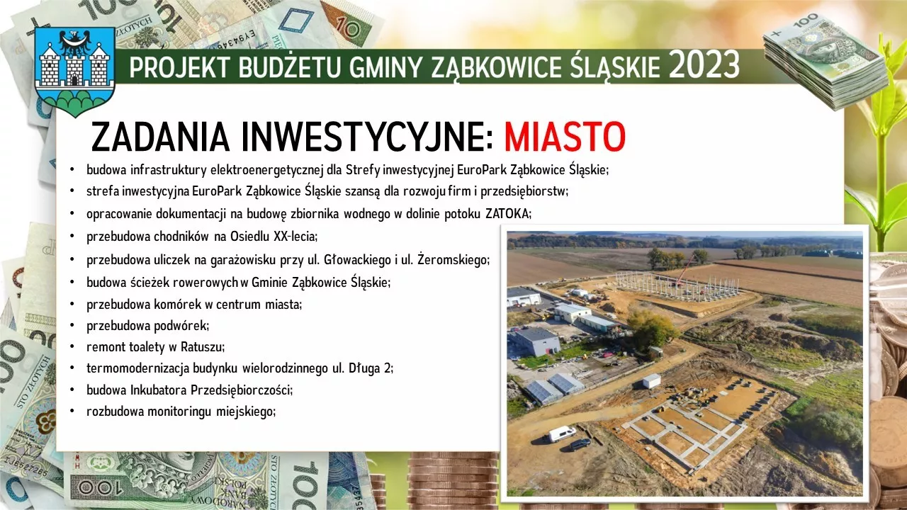 Budżet Gminy Ząbkowice Śląskie na 2023 rok jest ambitny, pełen zadań rozwojowych, ale jest również pełen niepewności i nieprzewidywalności w związku z sytuacją gospodarczą (wzrosty cen prądu, gazu, energii cieplnej, powrotu VAT-u do 23%, wzrosty bieżących kosztów utrzymania oświaty, pomocy społecznej i usług komunalnych)