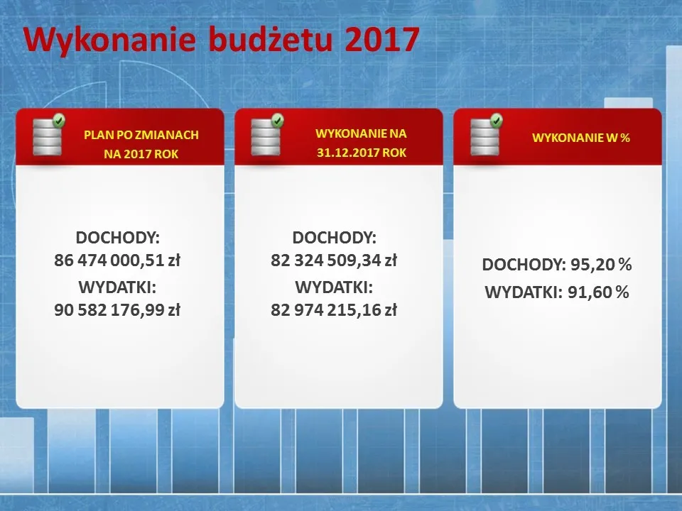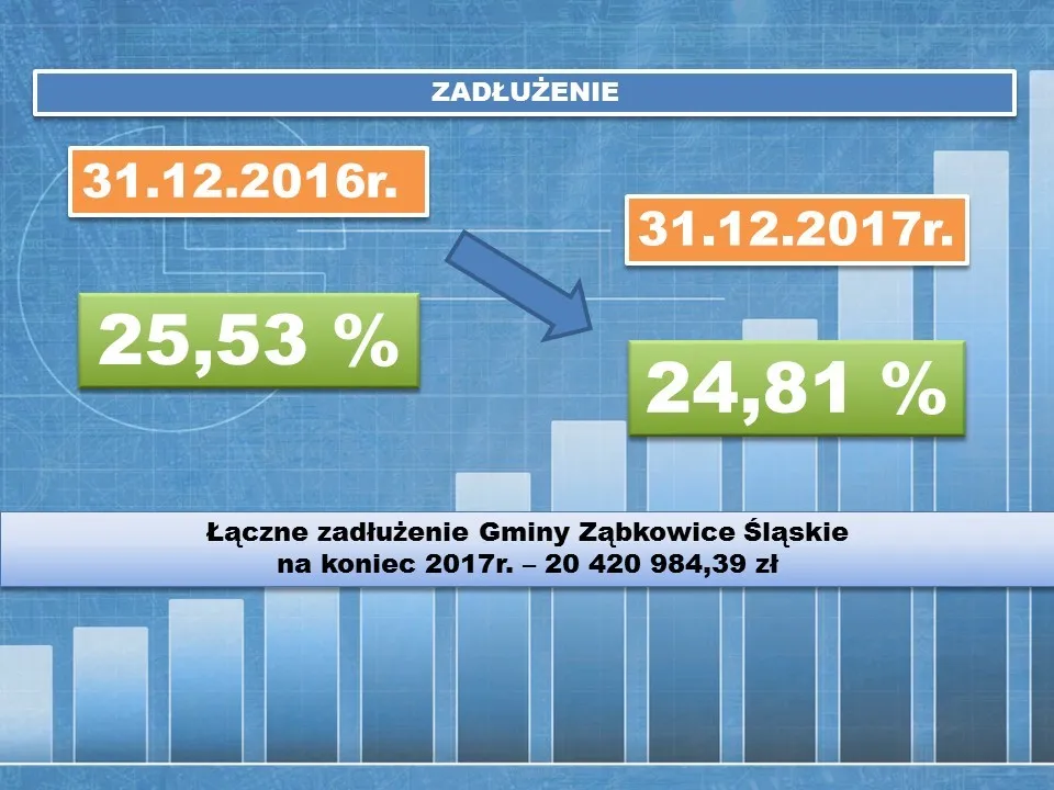 Podczas dzisiejszej sesji Rada Miejska Ząbkowic Śląskich pozytywnie oceniła pracę burmistrza Marcina Orzeszka i udzieliła mu absolutorium z wykonania budżetu za 2017 rok. Sprawozdanie burmistrz Marcin Orzeszek przedstawił w formie prezentacji, w której omówił dochody i wydatki gminy oraz najważniejsze zrealizowane inwestycje. Dochody za 2017 rok zamknęły się w kwocie 82 324 509,34 zł, zaś wydatki wyniosły 82 974 215,16 zł.