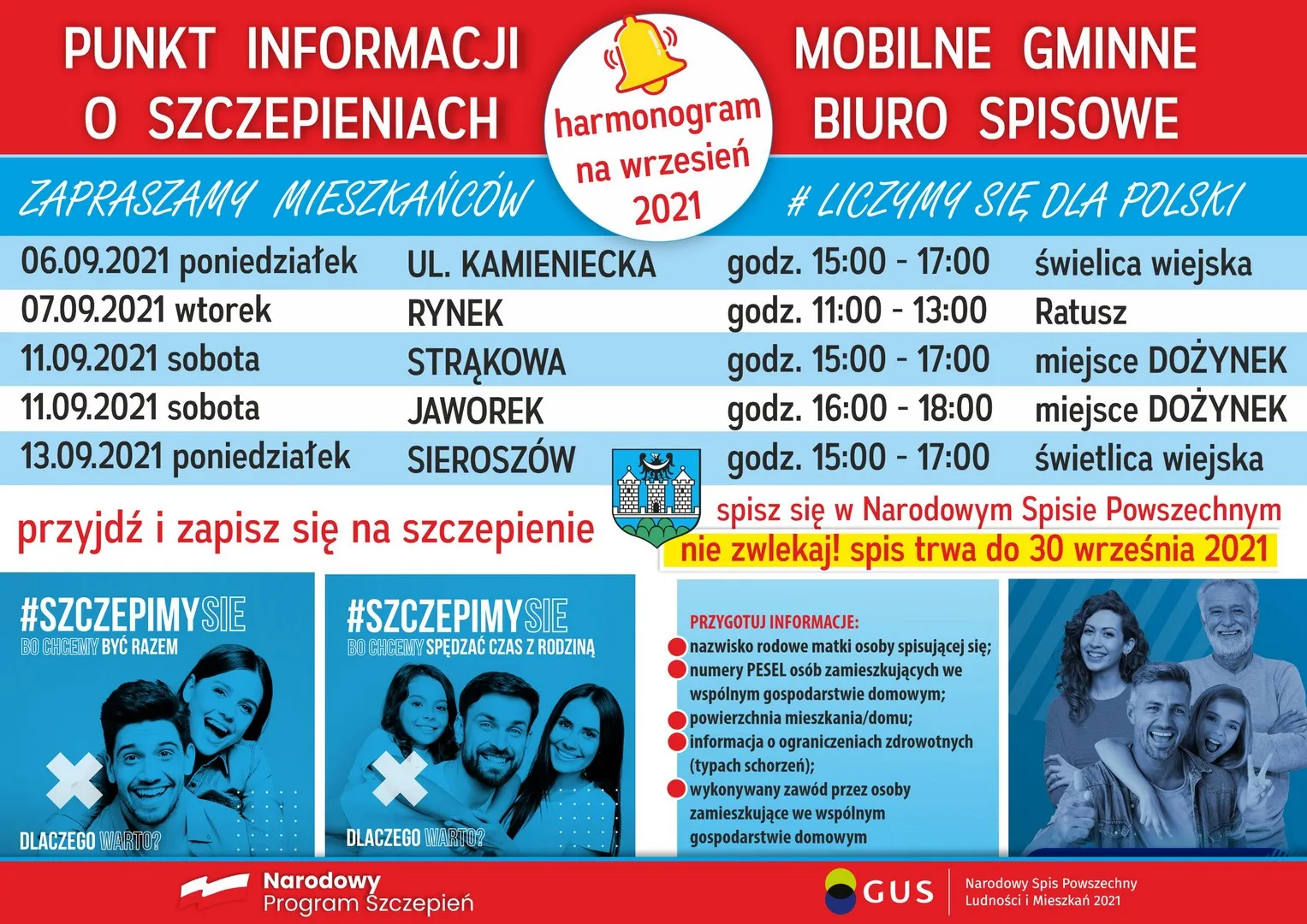 Mobilne gminne biuro spisowe oraz punkt informacji o szczepieniach - terminy wrześniowe
