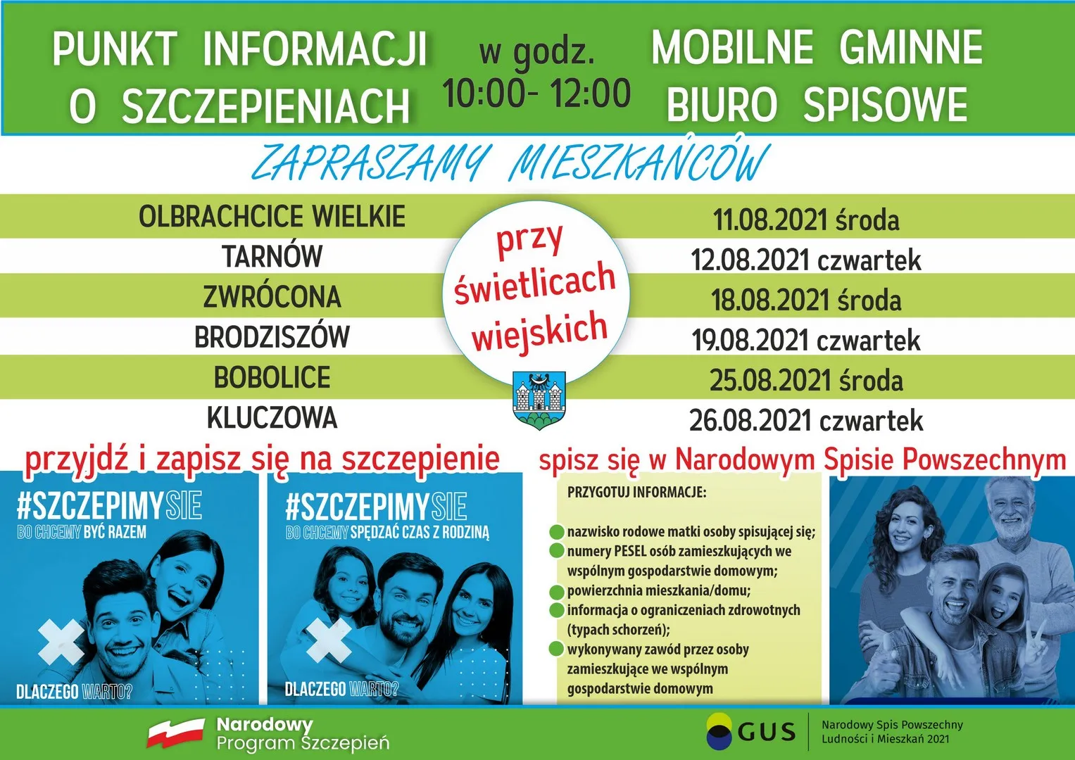 Mobilne gminne biuro spisowe oraz punkt informacji o szczepieniach w sołectwach - terminy sierpniowe