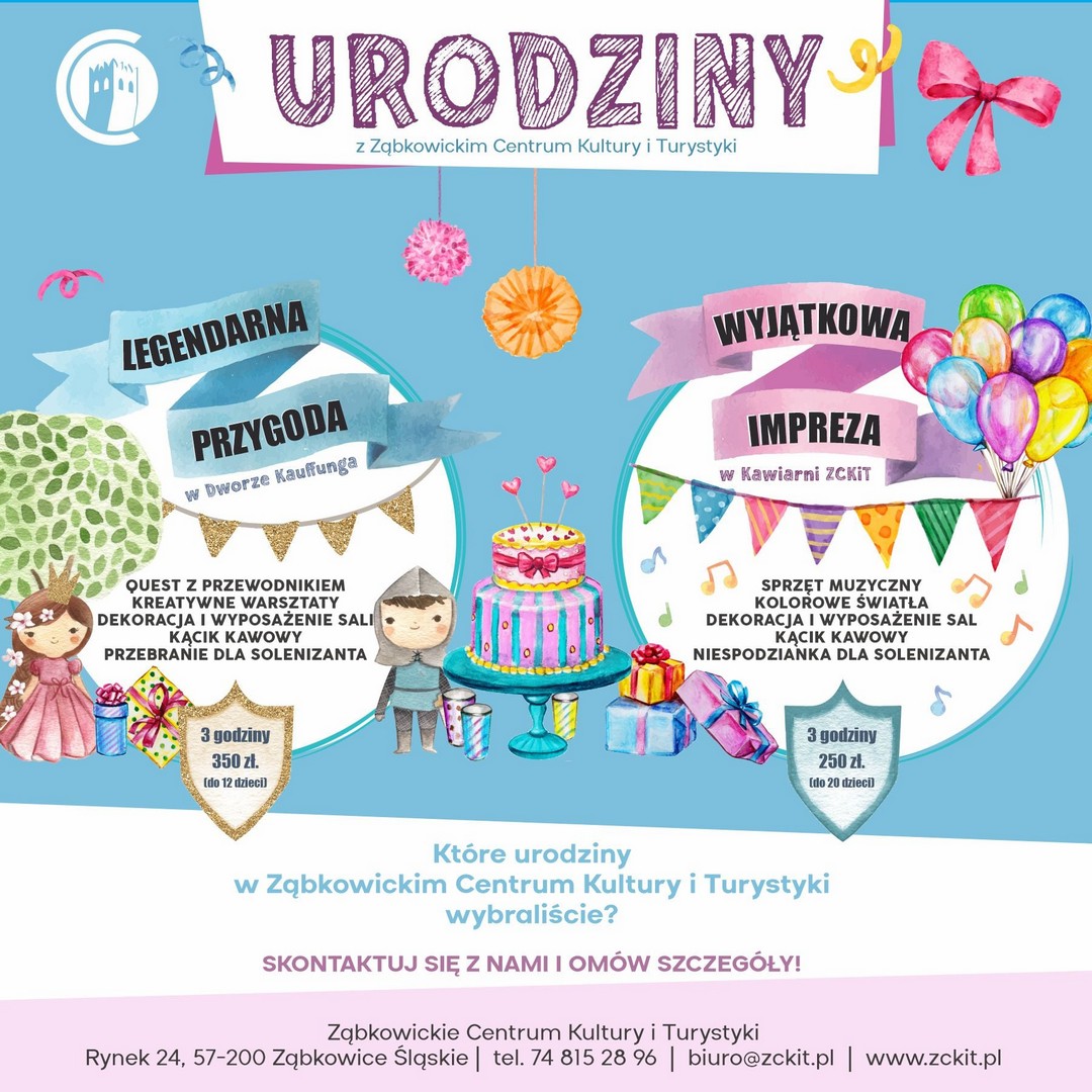 Dla ciekawych świata, lubiących zagadki, zabawy z fabułą, bajki, księżniczki i rycerzy a także tańce i dyskotekę polecamy URODZINY W ZĄBKOWICKIM CENTRUM KULTURY I TURYSTYKI. Do wyboru są tu dwie opcje: