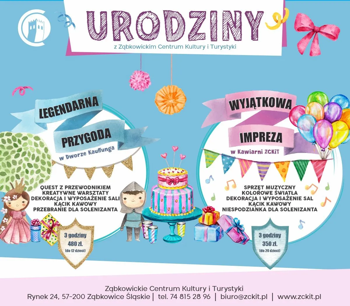 Dla ciekawych świata, lubiących zagadki, zabawy z fabułą, bajki, księżniczki i rycerzy a także tańce i dyskotekę polecamy URODZINY W ZĄBKOWICKIM CENTRUM KULTURY I TURYSTYKI. Do wyboru są tu dwie opcje: