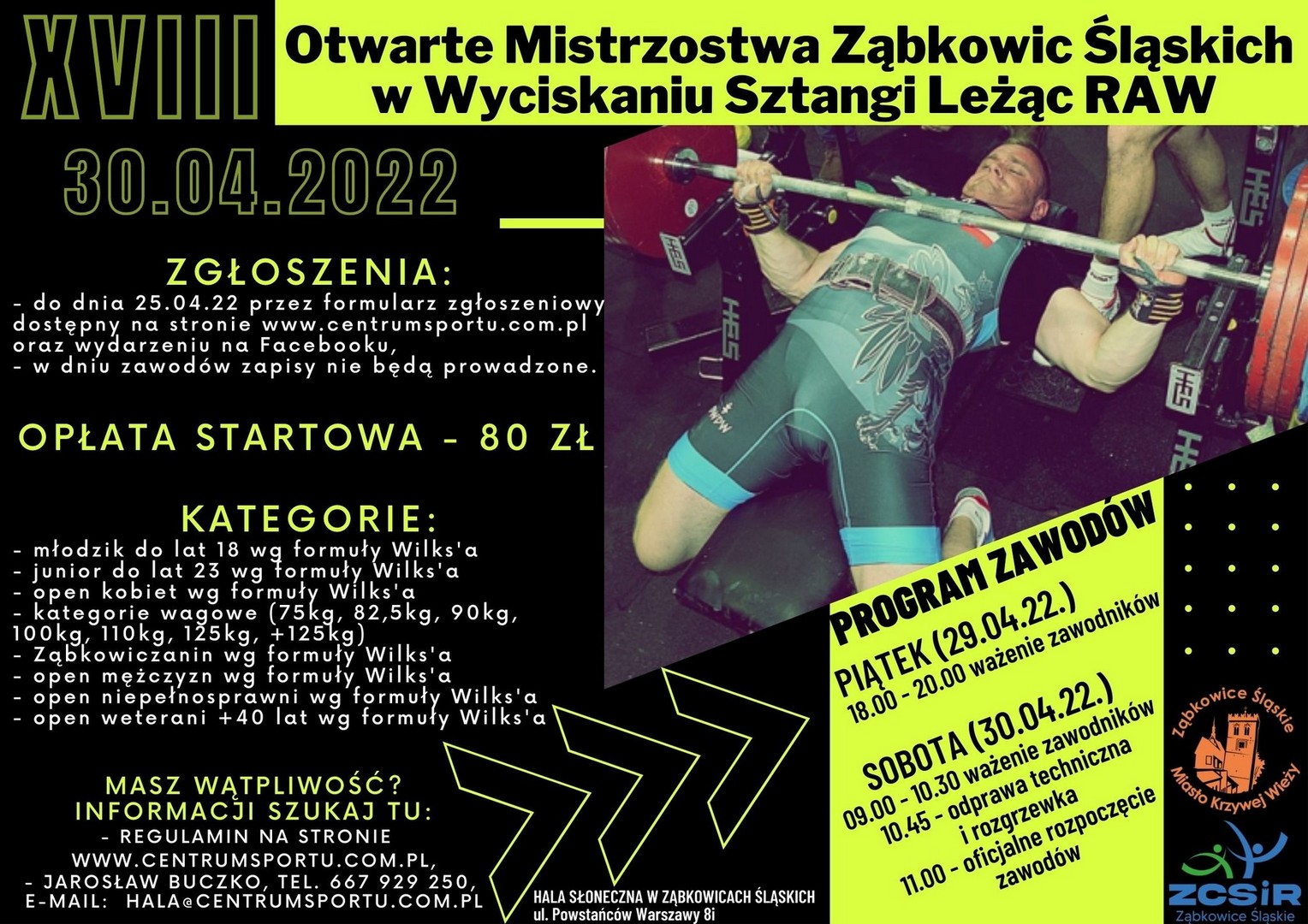 Otwarte Mistrzostwa Ząbkowic Śląskich w Wyciskaniu Sztangi Leżac RAW