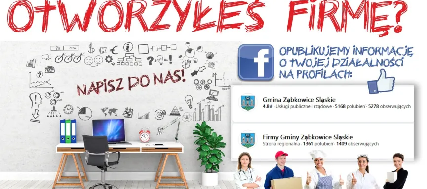 Chętnie opublikujemy informację o Twojej działalności na profilu facebook’owym „Gmina Ząbkowice Śląskie” oraz profilu „Firmy Gminy Ząbkowice Śląskie”.