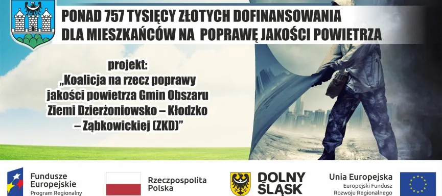 Projekt dofinansowany w ramach konkursu RPDS.03.03.01-IP.01-02-324/18 z Regionalnego Programu Operacyjnego Województwa Dolnośląskiego 2014 – 2020, oś priorytetowa 3. Gospodarka niskoemisyjna, Działanie 3.3 Efektywność energetyczna w budynkach użyteczności publicznej i sektorze mieszkaniowym, Poddziałanie 3.3.1 – Efektywność energetyczna w budynkach użyteczności publicznej i sektorze mieszkaniowym na terenie OSI ZKD, typ 3.3 e Modernizacja systemów grzewczych i odnawialne źródła energii – projekty dotyczące zwalczania emisji kominowej – formuła grantowa.
