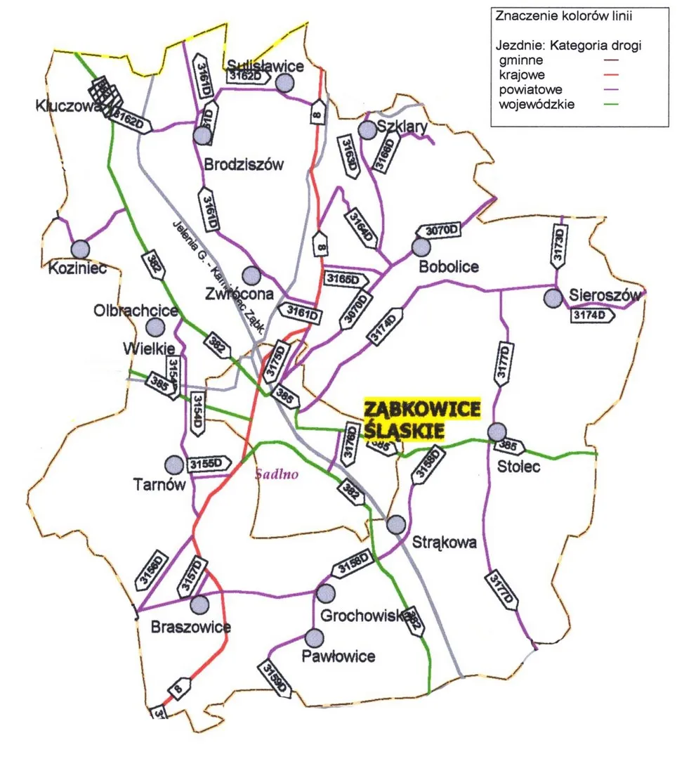 MAPKA - DROGI W GMINIE ZĄBKOWICE ŚLĄSKIE: