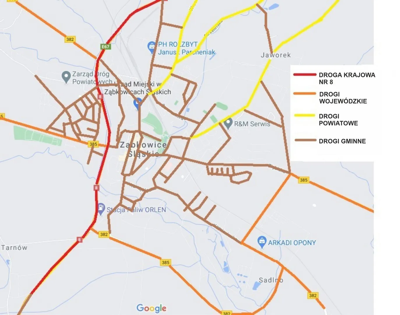 MAPKA - DROGI W MIEŚCIE ZĄBKOWICE ŚLĄSKIE: