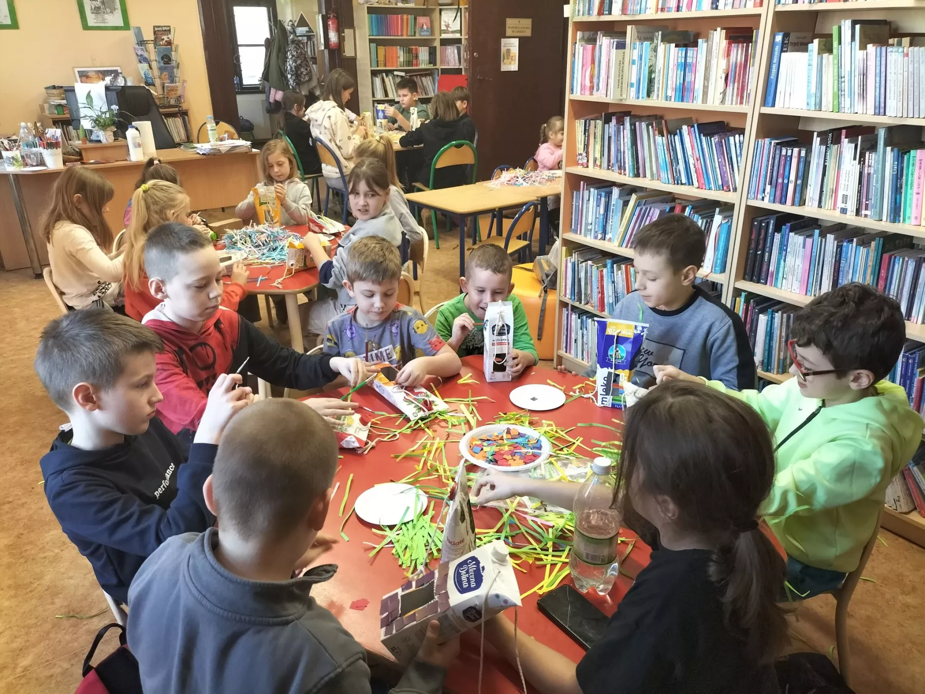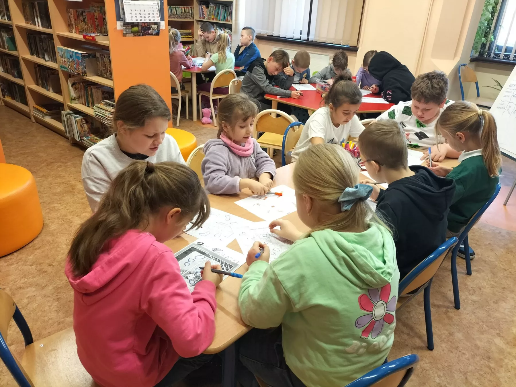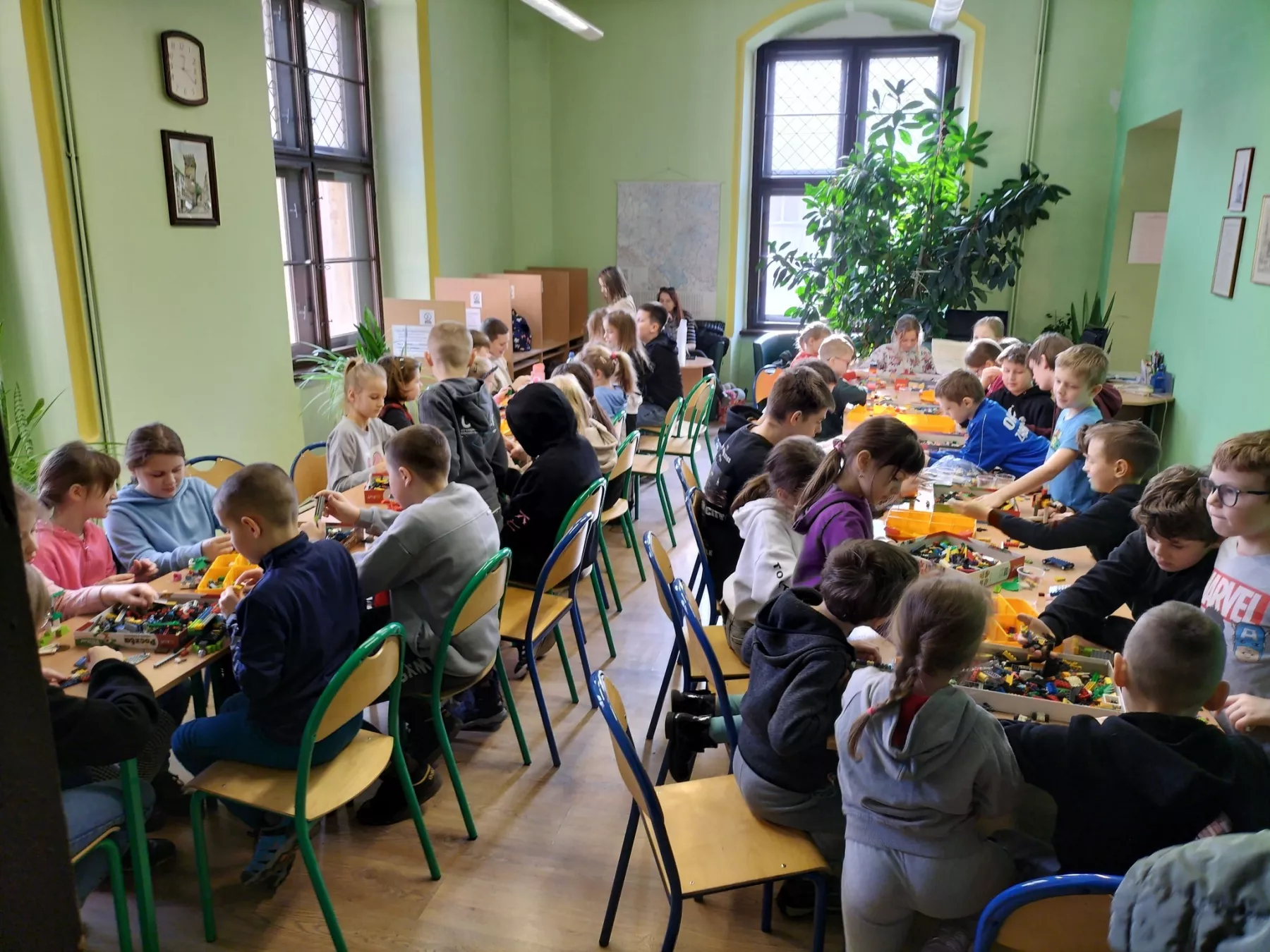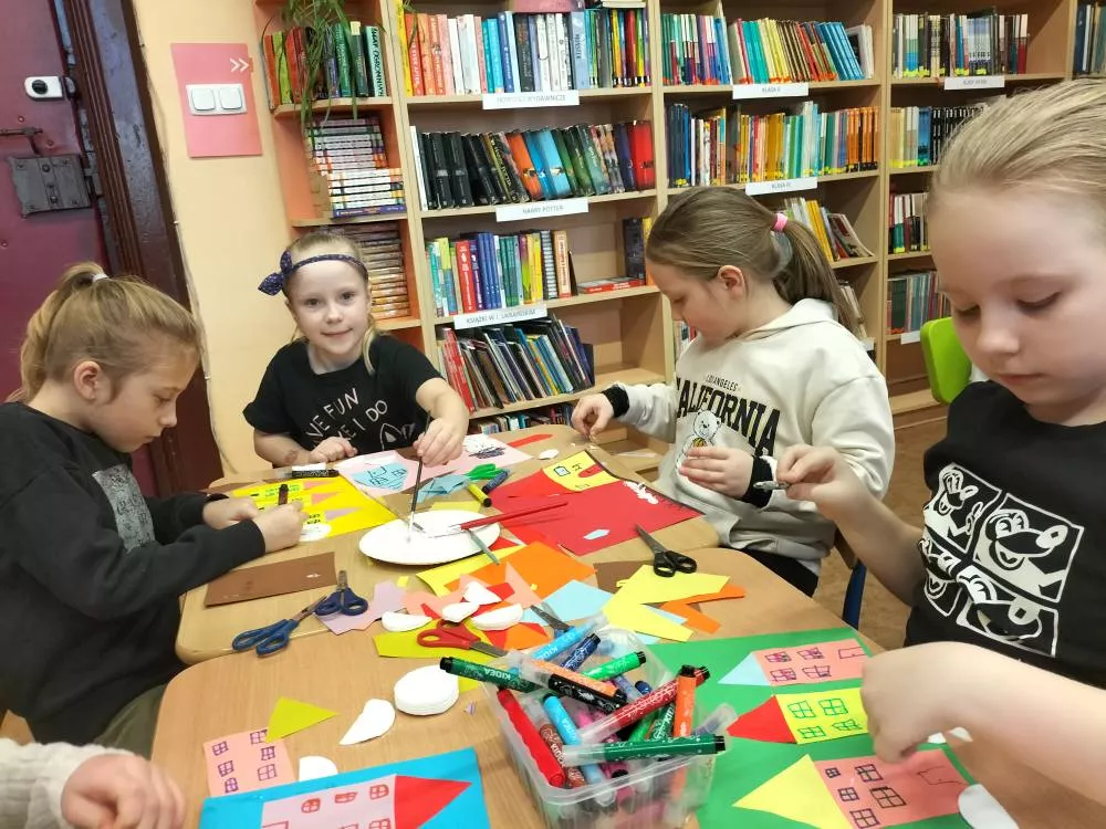 W zajęciach feryjnych w bibliotece wzięło w tym roku udział 320 dzieci. W poniedziałki panowało szaleństwo gier i zabaw. Na stołach królowały karty, planszówki, zgadywanki oraz kolorowanki. Podczas zajęć plastycznych i kreatywnych wykonywaliśmy zimowe pejzaże, maski karnawałowe, karmniki dla ptaków oraz walentynkowe ramki i breloki. W środy ćwiczyliśmy logiczne myślenie i spostrzegawczość. Największą popularnością cieszyły się zajęcia z klockami LEGO. Biblioteka przeobrażała się w miejsce budowlanej fantazji. Wyobraźnia i umiejętności dzieci i młodzieży pozwoliły na stworzenie kreatywnych LEGOKREACJI. Tegoroczne ferie upłynęły bardzo szybko w miłej i twórczej atmosferze.