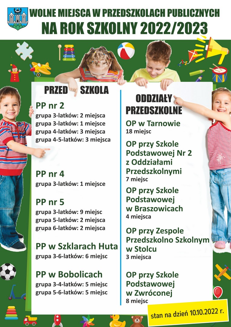 Są wolne miejsca w przedszkolach - Kochane Dzieci czekamy na Was!