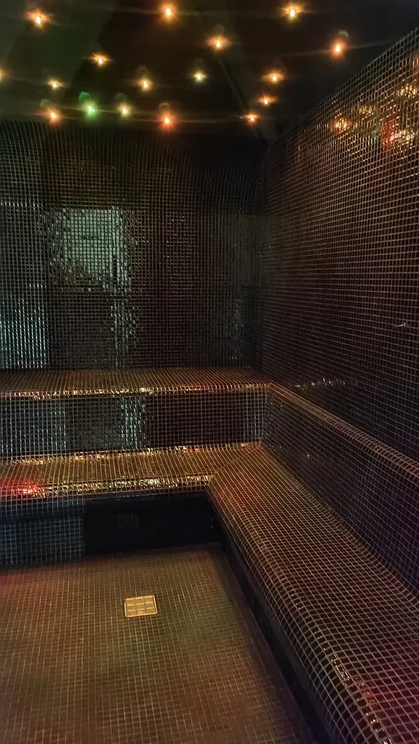 - łaźnia parowa z temperaturą od 45 do 60 stopni Celsjusza i wilgotnością 100 proc oraz tężnia solankowa, deptak zewnętrzny z basenem do schładzania ciała i strefa natryskowa.