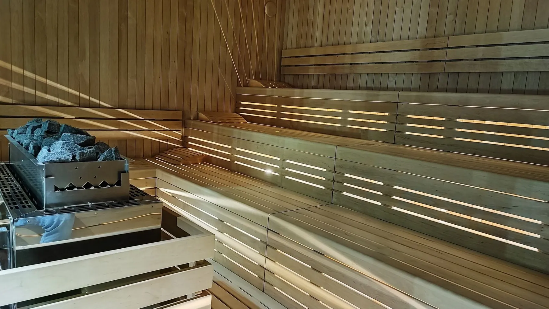 - sauna fińska łagodna, w której temperatura będzie oscylować na poziomie 80-90 stopni Celsjusza z wilgotnością do 35 proc,