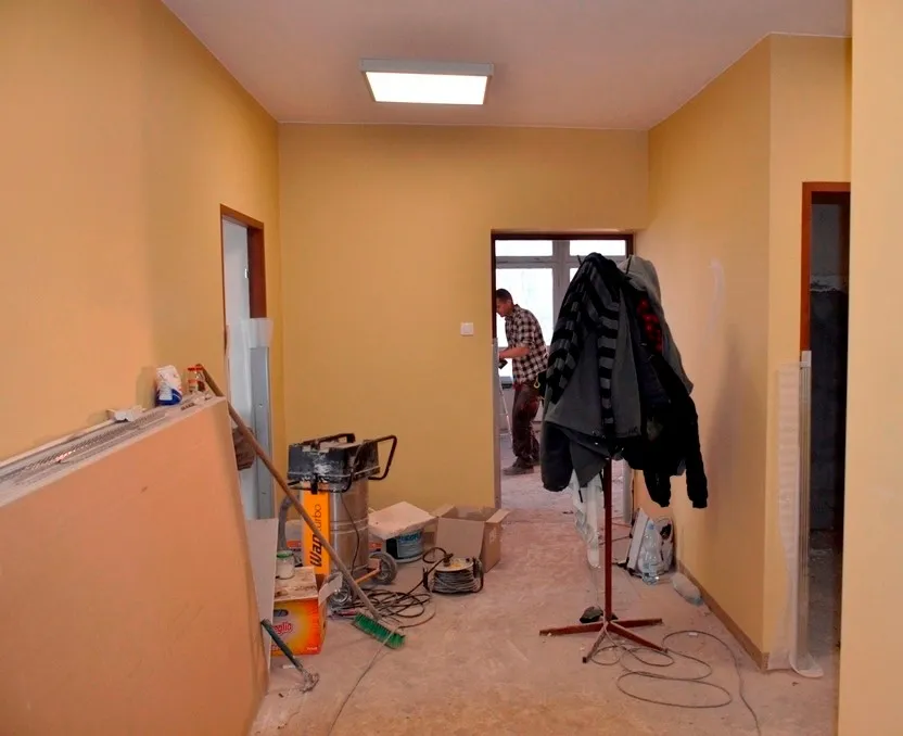 Prace w budynku Ośrodka Pomocy Społecznej mające na celu przystosowanie pomieszczeń do programu Senior+ postępują zgodnie z planem, każdego dnia widać na nich postęp. Dziś tę inwestycję odwiedził burmistrz Marcin Orzeszek wraz z kierownikiem Wydziału Infrastruktury i Gospodarki Przestrzennej Jarosławem Trześniakiem.