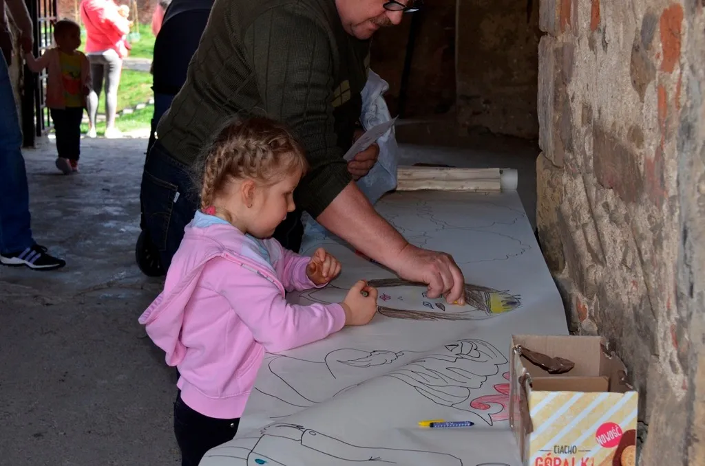 Na zamkowym dziedzińcu można było spróbować swoich sił m.in. w łucznictwie, średniowiecznych tańcach, grze w kubb, walkach bronią białą, przymierzyć rycerską zbroję czy wytwarzaniu świec. Dodatkowo dzieci kolorowały najdłuższą w historii ząbkowicką kolorowankę.