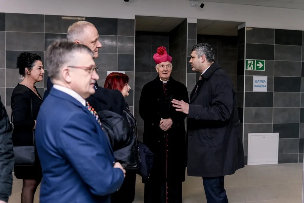 Bardzo dziękuję także tym wszystkim, którzy od początku tę inwestycję wspierali dobrym słowem, podpowiadali i dopingowali: Monice Wielichowskiej, Grzegorzowi Schetynie, Wojciechowi Murdzkowi, Stanisławowi Jurcewiczowi, księdzu biskupowi Ignacemu Decowi, który zawsze był żywo zainteresowany postępami prac – cieszymy się, że był z nami na wmurowaniu kamienia węgielnego i obecny jest dzisiaj. Dziękuję także Teresie Mazurek, Zbigniewowi Suchycie, Wiesławowi Witkowskiemu, Józefowi Marcinków, Wojciechowi Bochnakowi, Romanowi Festerowi, Dariuszowi Marcinków, Marcinowi Przychodnemu, Wojciechowi Bilińskiemu, Andrzejowi Pacholakowi, Bogdanowi Tkaczyńskiemu i Czesławowi Kręcichwostowi, Marcinowi Szymańskiemu i księdzu Marianowi Mądremu.