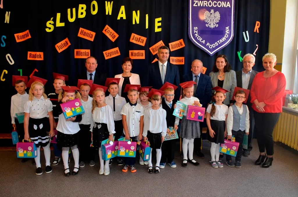 Uczniowie klasy 1 Szkoły Podstawowej w Zwróconej złożyli uroczyste ślubowanie i stali się oficjalnie członkami gminnej społeczności uczniowskiej. Na apelu z okazji ślubowania pokazali swoje umiejętności wokalne, taneczne oraz wiedzę jaką nabywają każdego dnia podczas zajęć. Następnie zostali pasowani na uczniów przez burmistrza Marcina Orzeszka.