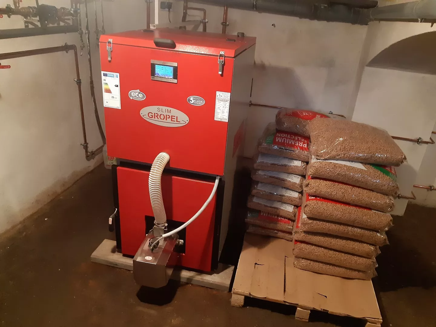 Ogrzewanie starą kuchnią węglową zostało zastąpione nowym ekologicznym kotłem na pellet.