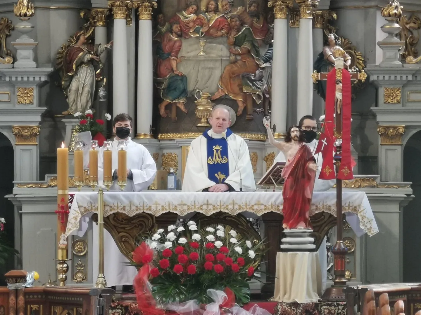 Po mszy świętej zostały złożone kwiaty i wieńce pod pomnikiem.