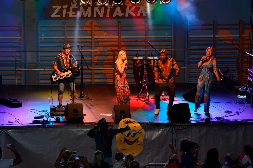 Ziemniak oczywiście był główną atrakcją święta, zajadali się nim wszyscy dzieci jak i dorośli. Można było spróbować placków ziemniaczanych, ziemniaka z gzikiem czy frytek belgijskich. Publiczność rozgrzewały koncerty, które odbyły się w Hali Słonecznej na scenie wystąpiła Anna Żebrowska w repertuarze Anny Jantar, następnie wystąpiła zagraniczna formacja „Danicng Queen” z utworami zespołu „Abba”, ostatni koncert należał do polsko-afrykańskiej formacji „Babylon”, która wyśpiewała nam największe przeboje „Boney M”. Wszystkim dziękujemy za wspaniałą zabawę.