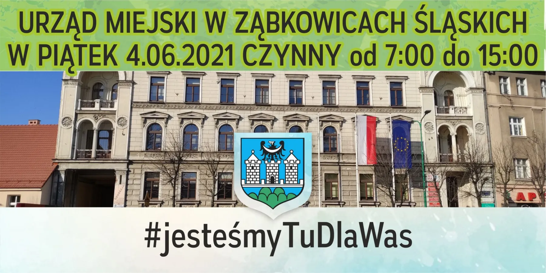 Urząd Miejski w piątek 4 czerwca 2021 czynny od 7:00 do 15:00