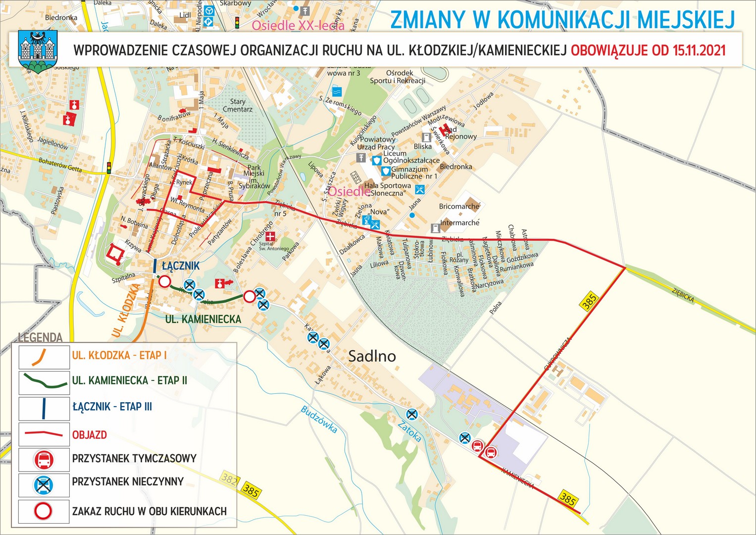 Jako pierwszy zamknięty zostanie odcinek ulicy Kamienieckiej - od 15 listopada 2021 roku nastąpi zmiana organizacji ruchu. Ulica Kamieniecka od skrzyżowania z ulicą Bolesława Chrobrego do Skrzyżowania z ulicą Kłodzką zostanie wyłączona z ruchu - przygotowano objazd do centrum ulicą Cukrowniczą oraz Ziębicką.