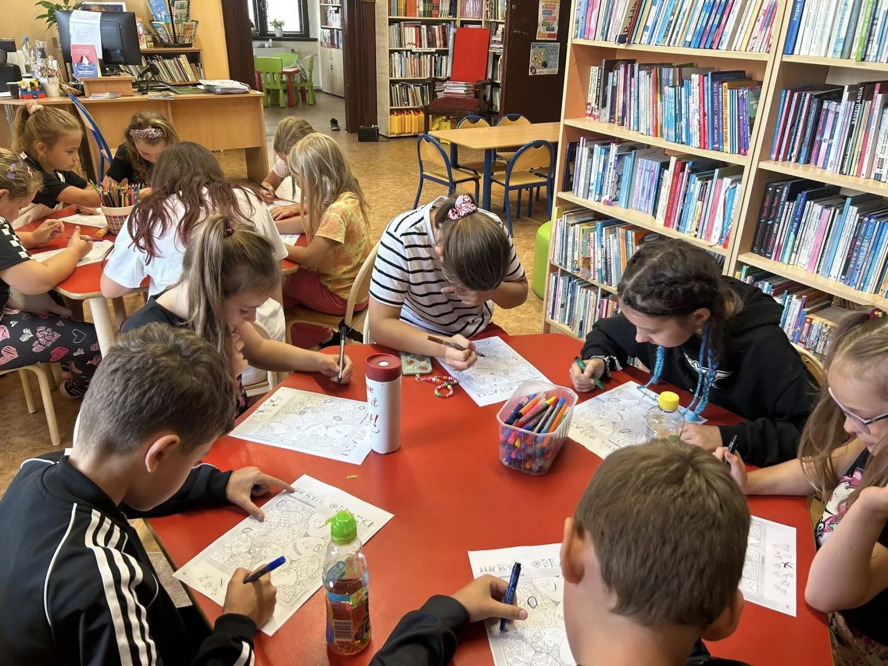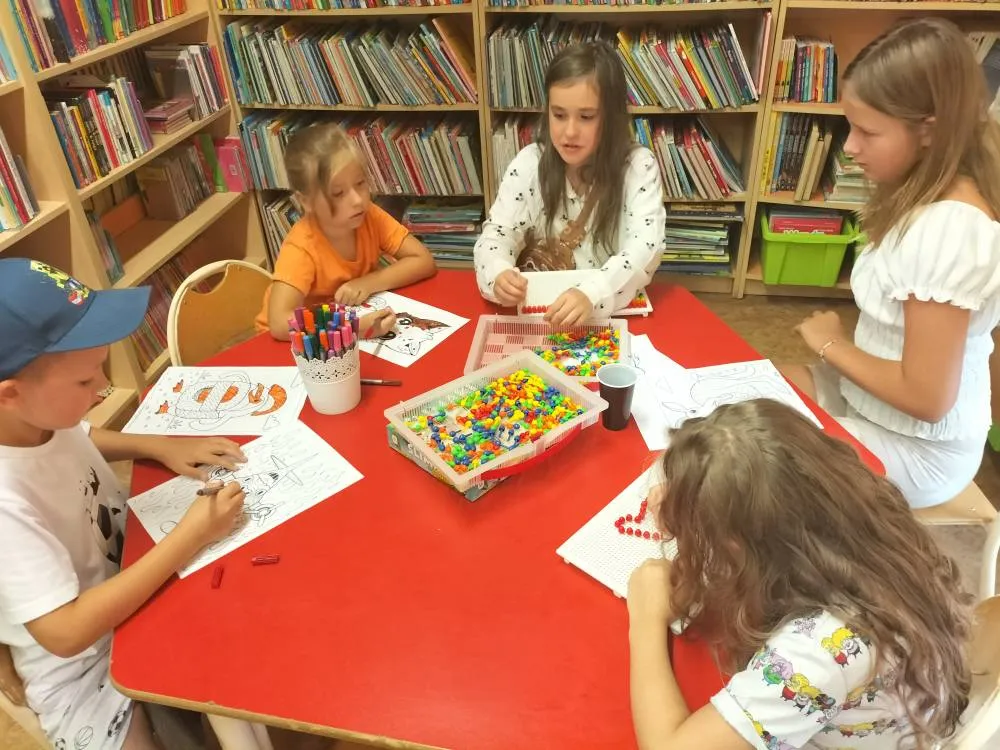 Tegoroczne wakacje w Bibliotece Publicznej upłynęły pod znakiem wspólnej zabawy, twórczych działań i odkrywania nowych pasji. Każdy dzień tygodnia miał swój wyjątkowy charakter i zapewniał uczestnikom różnorodne atrakcje. Poniedziałki były czasem rywalizacji i dobrej zabawy przy grach planszowych. Uczestnicy mogli spróbować swoich sił w klasycznych tytułach oraz poznać nowe, rozwijające strategiczne myślenie i współpracę. We wtorki dzieci i młodzież uczyły się nowych umiejętności, rozwijały zdolności manualne i własne talenty. Podczas zajęć powstawały prace plastyczne i drobne rękodzieła m.in. piaskowe malowanki, zdrapywanki, latające rakiety, kule brokatowe i wakacyjne bransoletki. Na środowych spotkaniach z klockami LEGO uczestnicy rozwijali swoją wyobraźnię, zdolności manualne oraz umiejętność pracy w grupie. Dzieci budowały zarówno własne projekty, jak i konstrukcje inspirowane zadaniami będące tematem dnia. W czwartki uczestnicy zajęć malowali, rysowali, tworzyli dekoracje, a także uczyli się wyrażać siebie poprzez różnorodne formy artystyczne. Piątek to dzień pełen łamigłówek, quizów i zabaw logicznych. To była świetna okazja do trenowania spostrzegawczości, sprytu i pracy zespołowej.Na zakończenie wakacyjnej przygody odbyła się wycieczka do Kopalni Złota w Złotym Stoku. Dzieci zwiedziły Sztolnię Gertrudy, zobaczyły podziemny wodospad, przejechały się górniczym pociągiem i poznały Średniowieczną Osadę Górniczą. Wakacyjny cykl zajęć w bibliotece dostarczył uczestnikom wielu radosnych chwil i niezapomnianych wrażeń. Był to czas spędzony nie tylko na zabawie, lecz także na rozwijaniu zainteresowań i budowaniu wspólnoty.