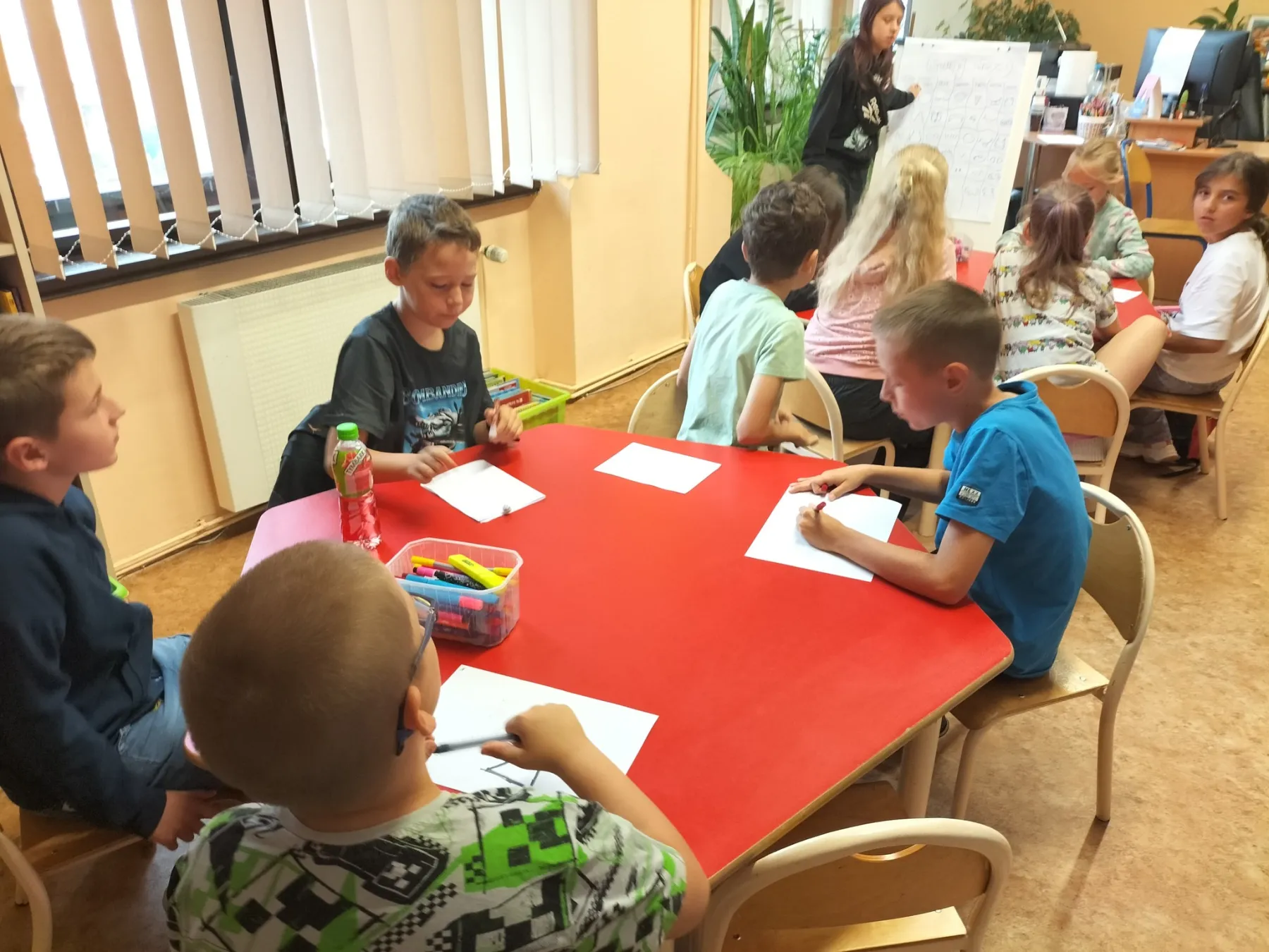 Podczas półkolonii d zieci miały okazję brać udział w wielu różnorodnych zajęciach sportowych, artystycznych i edukacyjnych. W półkolonii uczestniczyło 30 dzieci, które zostały podzielone na dwie grupy. Każda grupa miała zapewnioną opiekę pedagogiczną. Uczestnicy półkolonii w czasie zajęć rozwijały swoją kreatywność, brały udział w grach rozwijających myślenie oraz umiejętność współpracy w grupie. Codziennie odbywały się zajęcia na świeżym powietrzu, podczas których dzieci brały udział w zawodach sportowych. Jednym z ulubionych punktów programu były wyjścia na kryty basen miejski gdzie dzieci bawiły się w wodzie oraz uczestniczyły w różnych grach wodnych. W trakcie półkolonii zorganizowano kilka wycieczek między innymi do: Wioski Indiańskiej