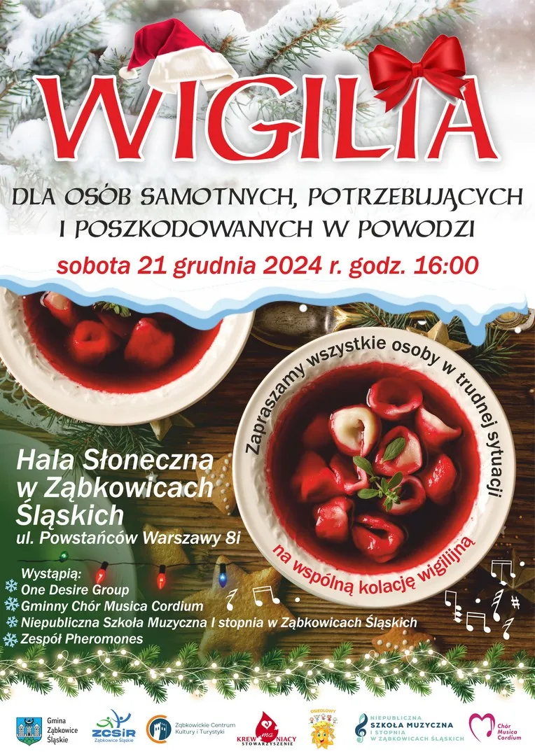 Serdecznie zapraszamy do udziału we wspólnym spotkaniu 21 grudnia 2024 r. w sobotę o godz. 16:00 na Hali Słonecznej w Ząbkowicach Śląskich wszystkie osoby znajdujące się w trudnej sytuacji rodzinnej czy materialnej. Warto ten świąteczny czas spędzić razem, w miłej atmosferze.