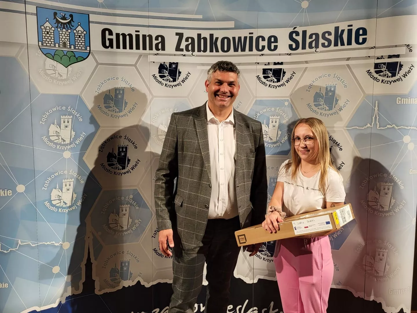 W środę w Ząbkowickim Centrum Kultury i Turystyki Burmistrz Ząbkowic Śląskich Marcin Orzeszek wręczył 168 laptopów dzieciom i młodzieży z terenu Gminy Ząbkowice Śląskie w ramach projektu „Granty PPGR - Wsparcie dzieci i wnuków byłych pracowników PGR w rozwoju cyfrowym”, który jest współfinansowany ze środków Unii Europejskiej w ramach Polski Cyfrowej.