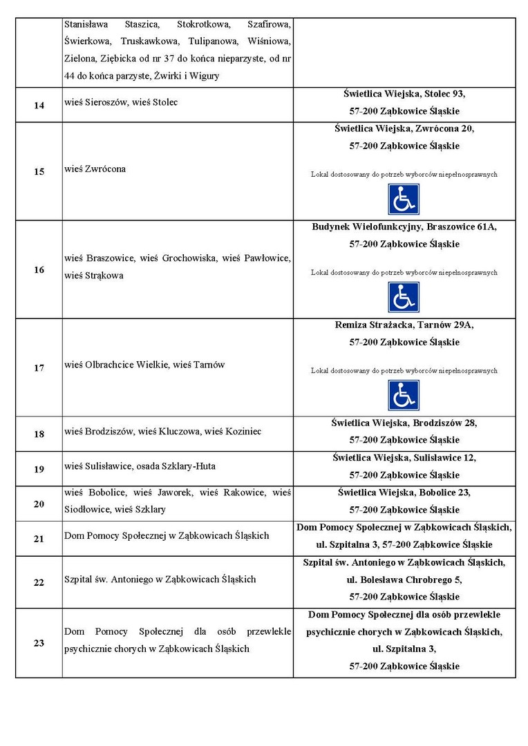 Zachęcamy do zapoznania się z Obwieszczeniem Nr 7/II/OR-2024 Burmistrza Ząbkowic Śląskich z dnia 29 lutego 2024 r. i zwrócenie uwagi z wyprzedzeniem na wprowadzone zmiany, aby uniknąć w dniu wyborów szukania miejsca, w którym możecie Państwo zagłosować.