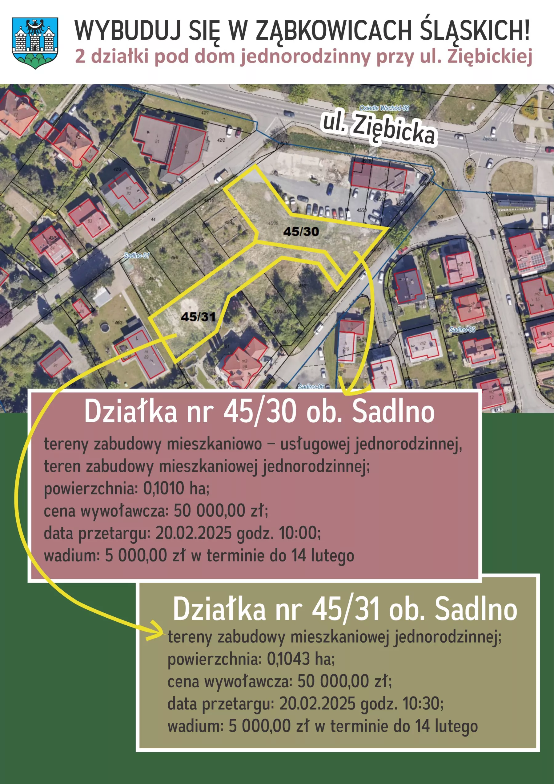 Wybuduj się w Ząbkowicach Śląskich! – 2 działki pod dom jednorodzinny przy ul. Ziębickiej - wadium do 14 lutego 2025 r.