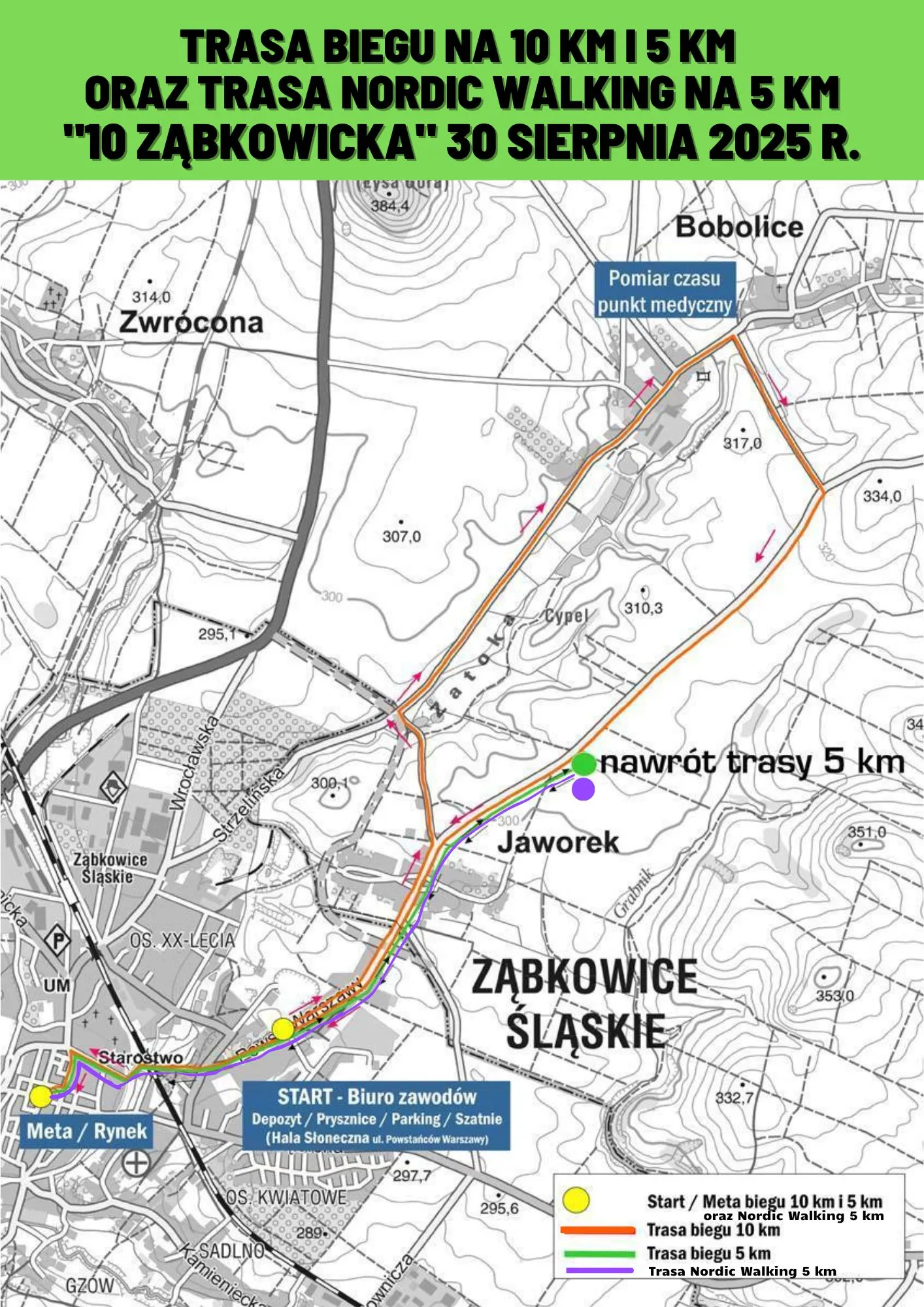 *Trasa biegu na 5 km ulicami: