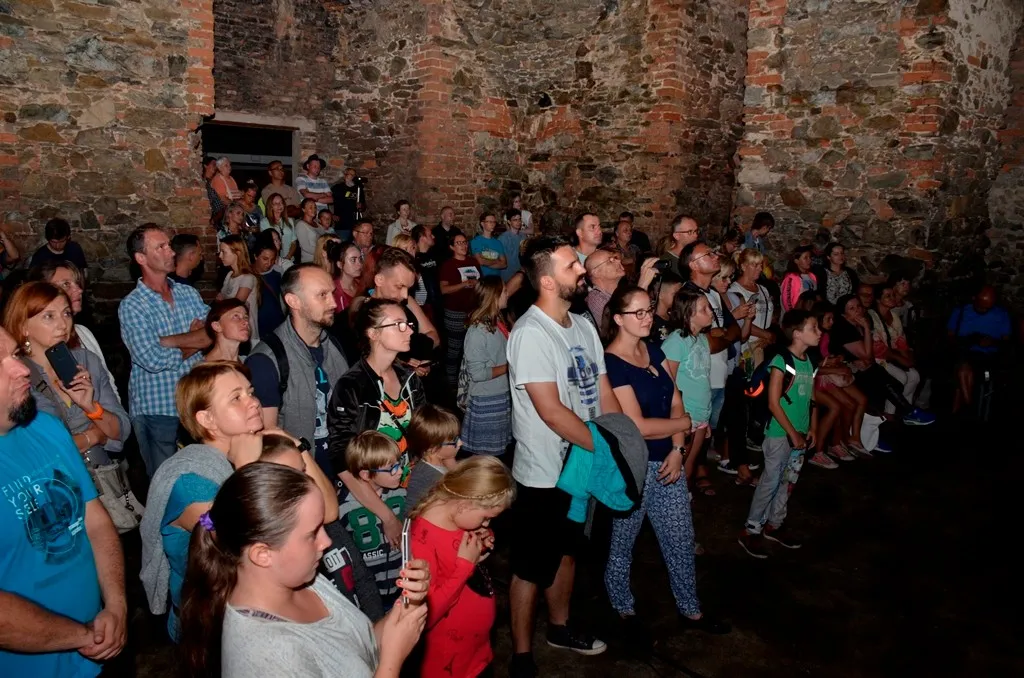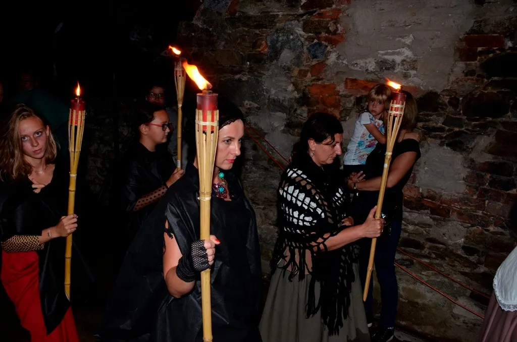 Tradycyjnie pierwszego dnia na dziedzińcu zamkowym wspólnie oglądaliśmy film „Pozwól mi wejść”, poprzedzony pokazem tańca z ogniem w wykonaniu LUMINIS oraz pięknym spektaklem przygotowanym przez Stowarzyszenie Animatorów Kultury „Sąd nad czarownicami”.