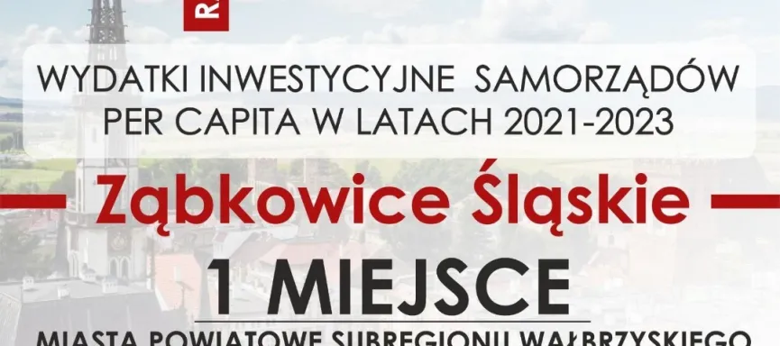 W opublikowanym przez Pismo Samorządu Terytorialnego "Wspólnota" rankingu wydatków inwestycyjnych samorządów per capita w latach 2021-2023 Ząbkowice Śląskie zajęły 1 miejsce wśród miast powiatowych subregionu wałbrzyskiego oraz 5 miejsce na 26 miast powiatowych w województwie dolnośląskim.