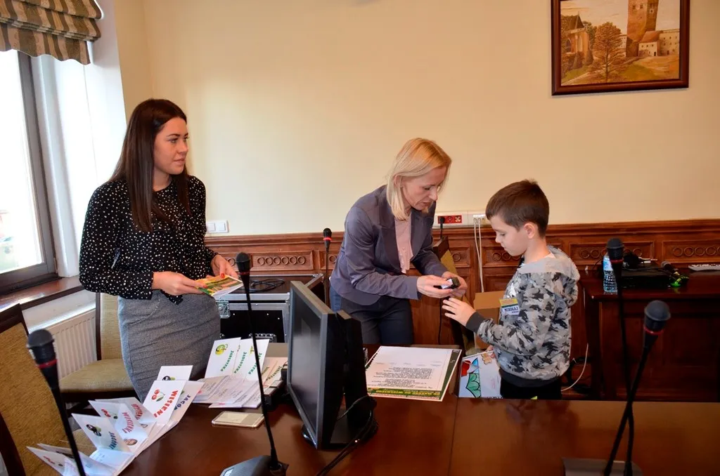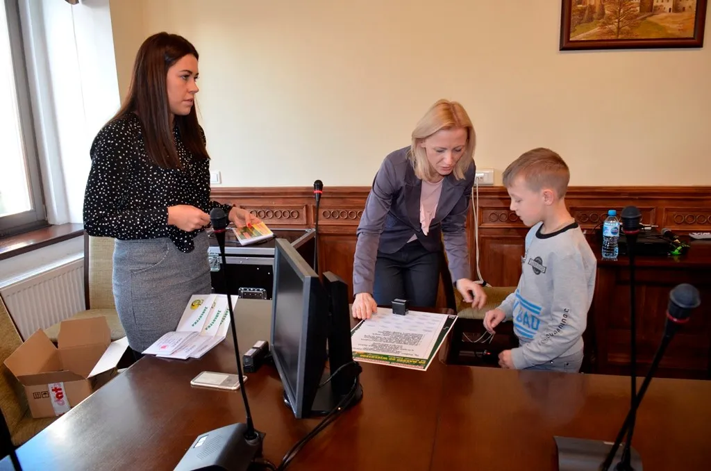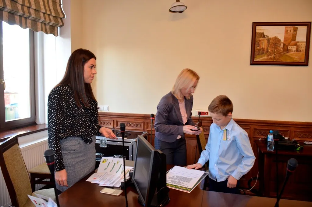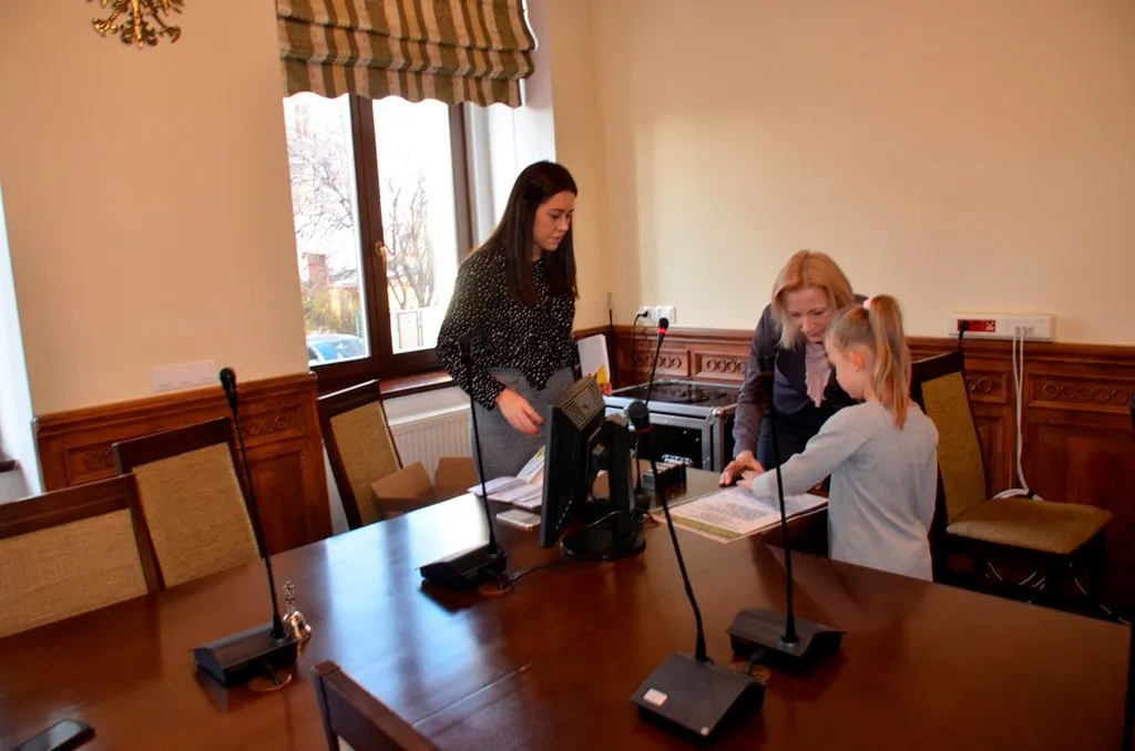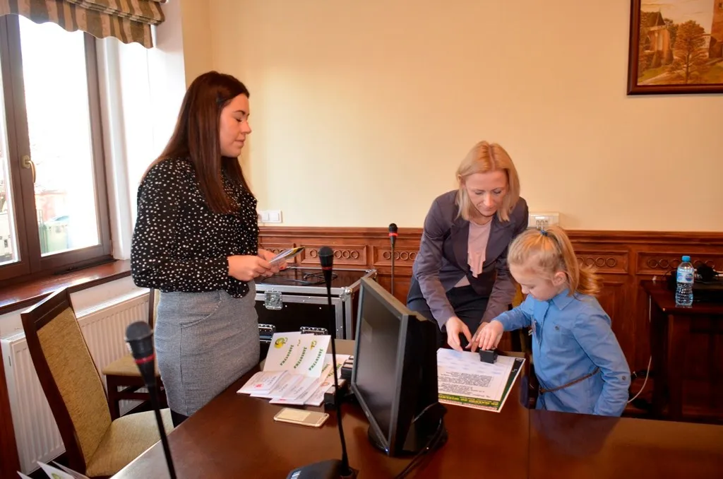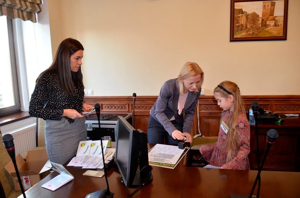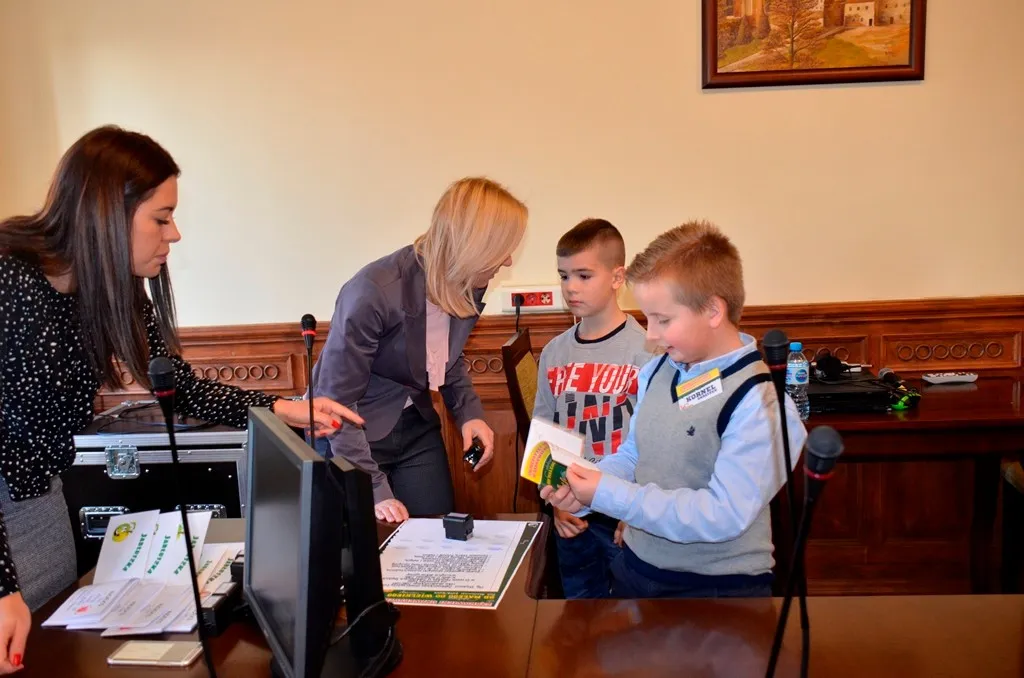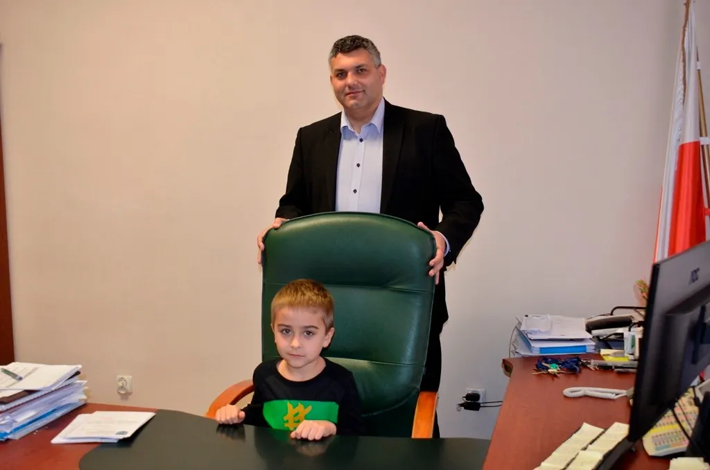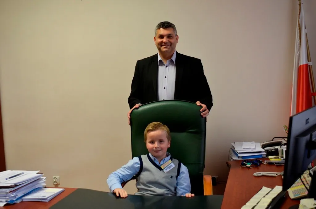 Kolejnym punktem była wizyta w gabinecie Burmistrza. Marcin Orzeszek opowiedział o swojej pracy i funkcjonowaniu urzędu. Każdy mógł zasiąść na fotelu burmistrza i zrobić sobie zdjęcie. W biurze Urzędu Stanu Cywilnego dzieci miały okazję wyszukać siebie w „tajemniczych księgach” i zobaczyć swój oryginalny akt urodzenia. Na koniec wizyty w gabinecie burmistrza dzieci dostały pismo potwierdzające nadanie tytułu „Małego Urzędnika Miasta Krzywej Wieży i dr. Frankensteina” z pieczątką i podpisem Burmistrza. Zajęcia ZUD zakończyły się w sali Konferencyjnej, gdzie dzieci otrzymały imienne pieczątki, którymi podbiły wspólną „deklarację obywatelską”.