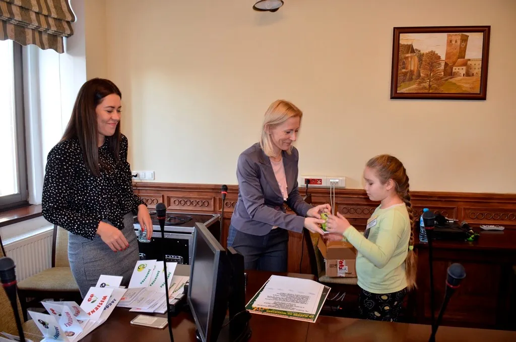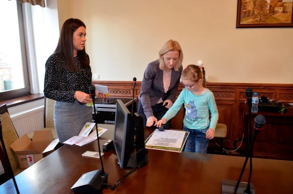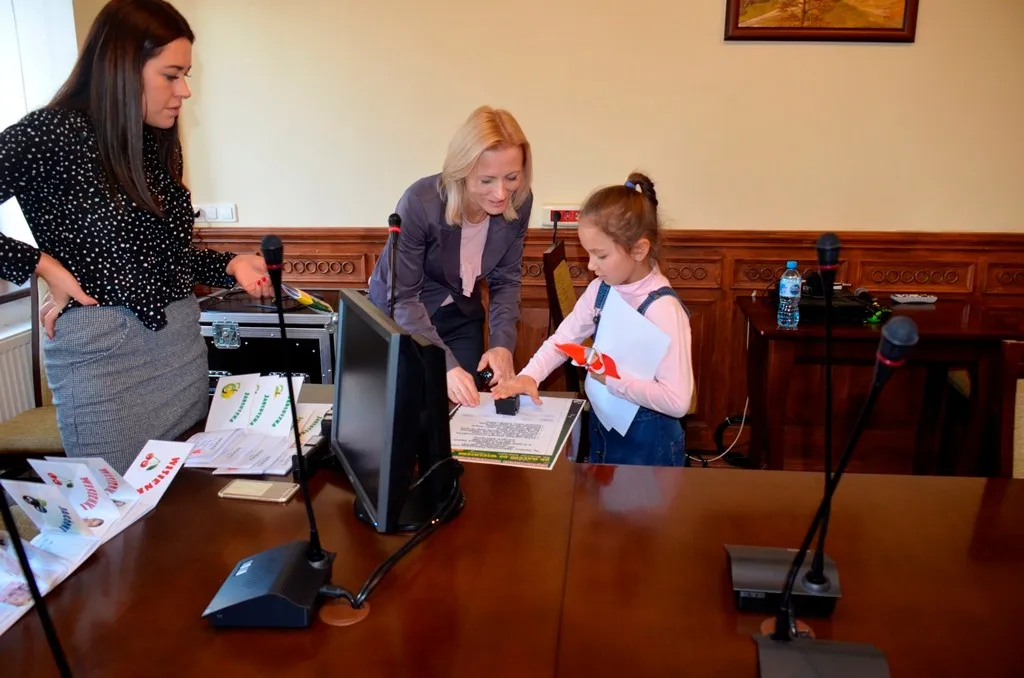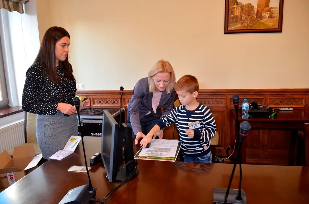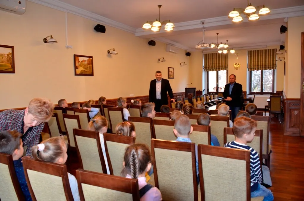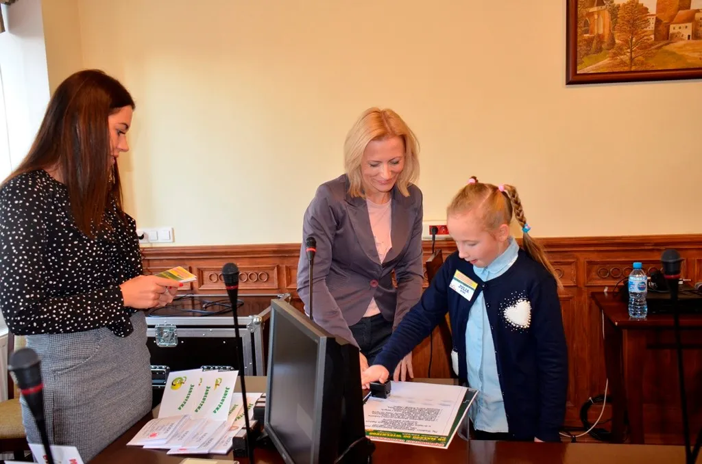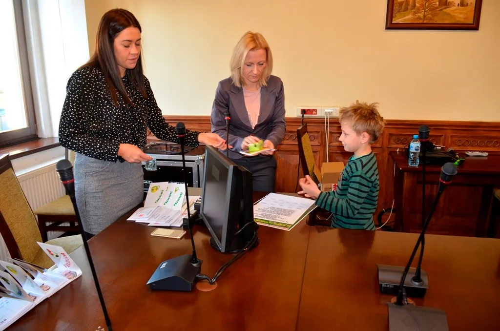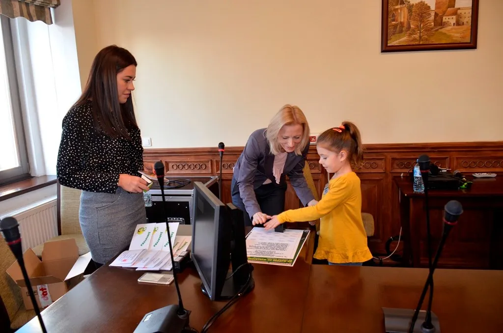 Kolejnym punktem była wizyta w gabinecie Burmistrza. Marcin Orzeszek opowiedział o swojej pracy i funkcjonowaniu urzędu. Każdy mógł zasiąść na fotelu burmistrza i zrobić sobie zdjęcie. W biurze Urzędu Stanu Cywilnego dzieci miały okazję wyszukać siebie w „tajemniczych księgach” i zobaczyć swój oryginalny akt urodzenia. Na koniec wizyty w gabinecie burmistrza dzieci dostały pismo potwierdzające nadanie tytułu „Małego Urzędnika Miasta Krzywej Wieży i dr. Frankensteina” z pieczątką i podpisem Burmistrza. Zajęcia ZUD zakończyły się w sali Konferencyjnej, gdzie dzieci otrzymały imienne pieczątki, którymi podbiły wspólną „deklarację obywatelską”.